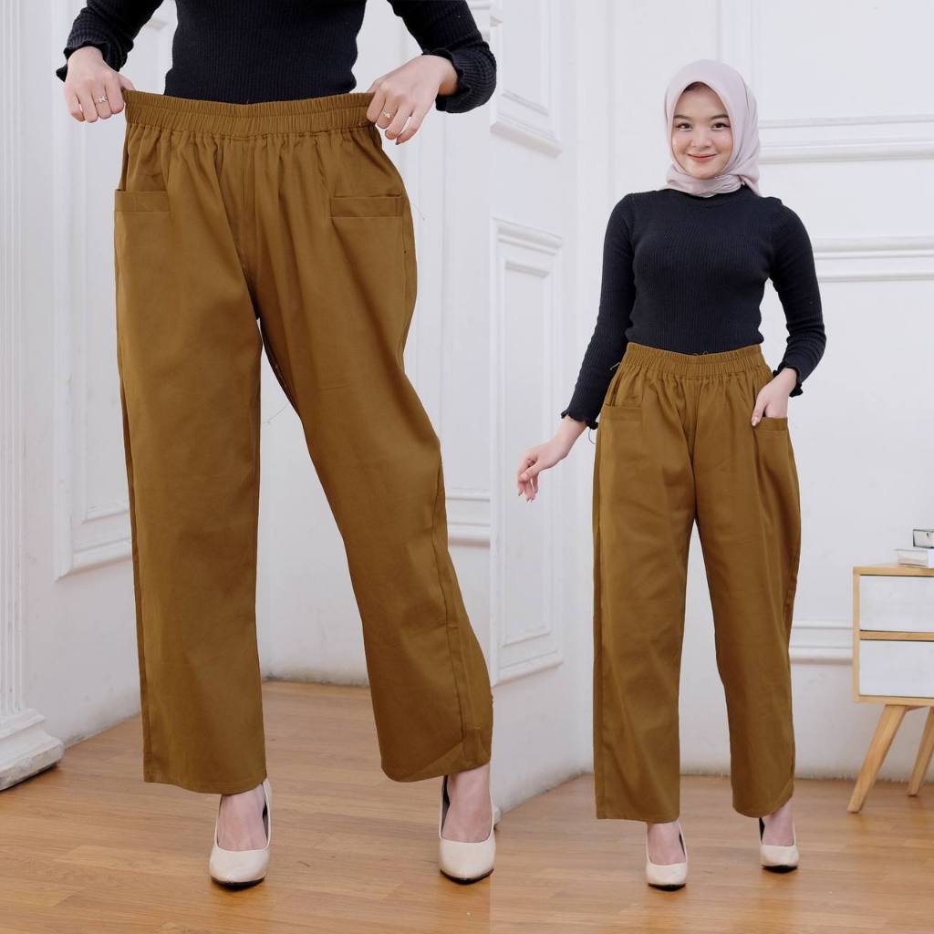 Kanaya - Celana Kulot Panjang Wanita Korean Loong Pants Jumbo Bahan Katun Twill Pinggang Full Karet
