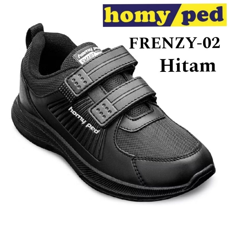 HOMYPED Sepatu Anak Sekolah Cowok Cewek SMP Hitam Putih Perekat Tali Original Kekinian Size 29 Sd 38