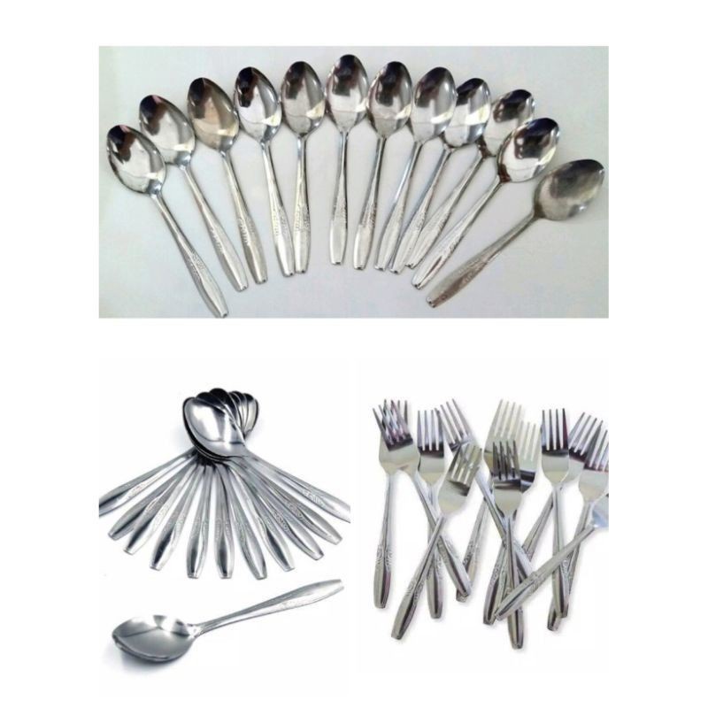 MOS [12 PCS] SENDOK MAKAN STAINLESS SPOON FORK / GARPU ANTI KARAT ISI 12 PCS 1 LUSIN SENDOK BUNGA SENDOK BATIK MURAH MER