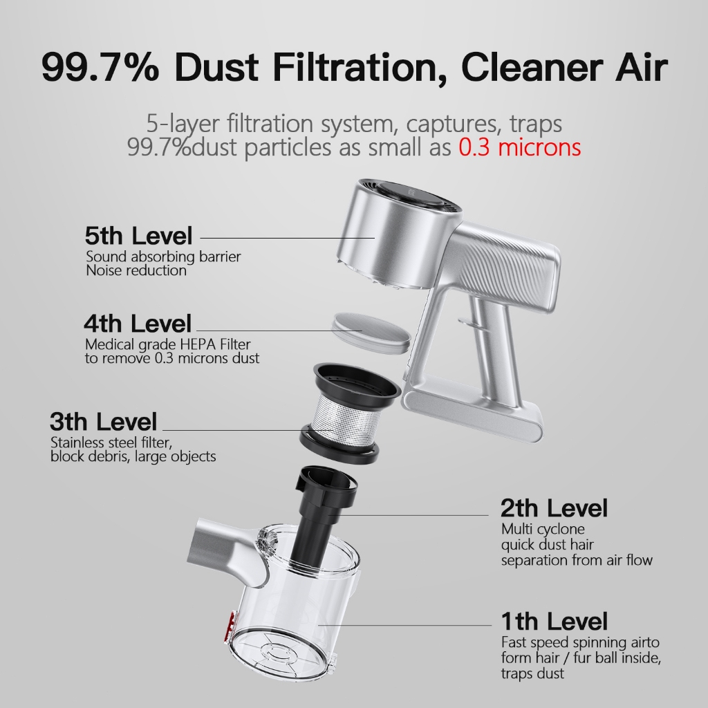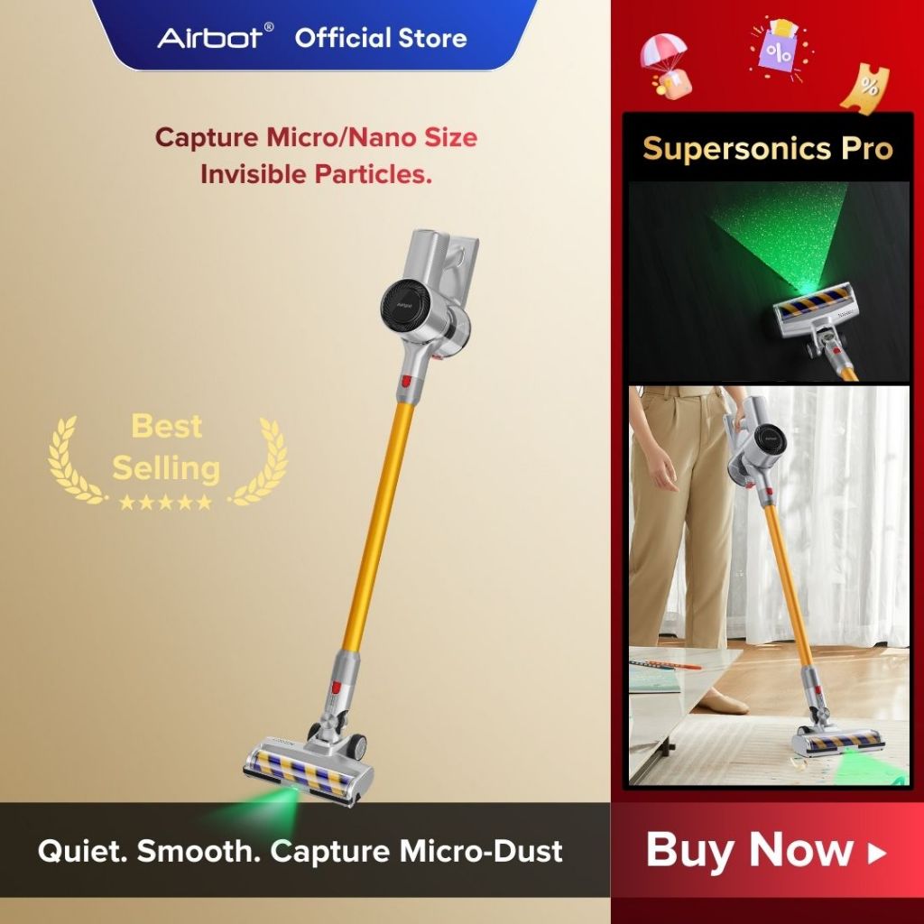[ New Launch ] Airbot Supersonics Pro, 25000Pa Laser Dust Detection Cordless Vacuum Stick Handheld Vacuum Cleaner, Vakum Tanpa Kabel dengan Daya Hisap Kuat