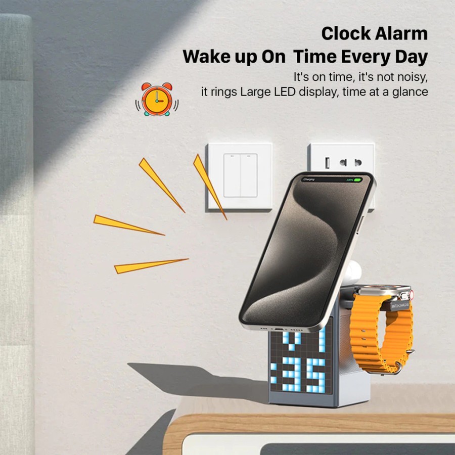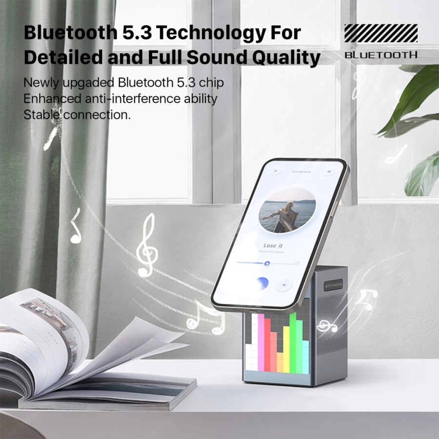 Kiip T3 6In1 Wireless Charging Station Fast Charging 15W Qi2 Led Bluetooth Speaker Portable