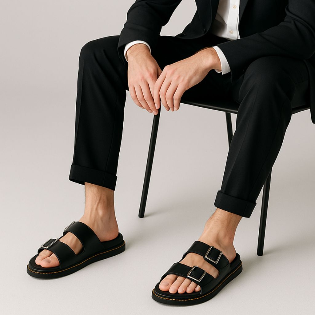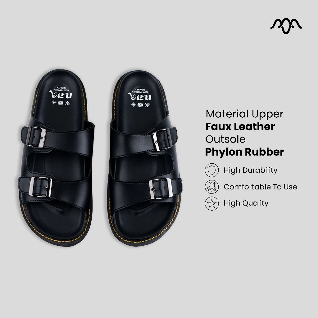 PROMO Navara Footwear - Sepatu Sandal Kulit Casual Sporty Pria I Full Black Sandal Fisherman Anti Slip | NVR De NEW 2026