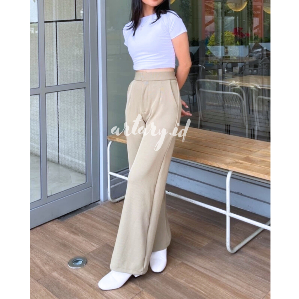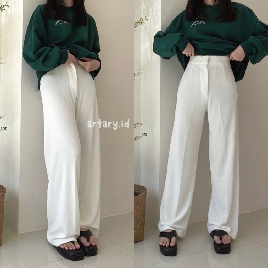 Artary Cozie Pants - Rib Knit Pants - Highwaist Cullote Celana Kulot Wanita