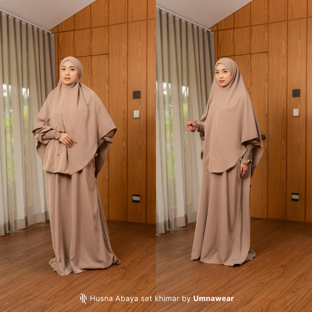Husna Abaya Batwing Set Khimar Ban Bahan Marina Syari Terbaru Haji Umroh Lebaran By Umnawear