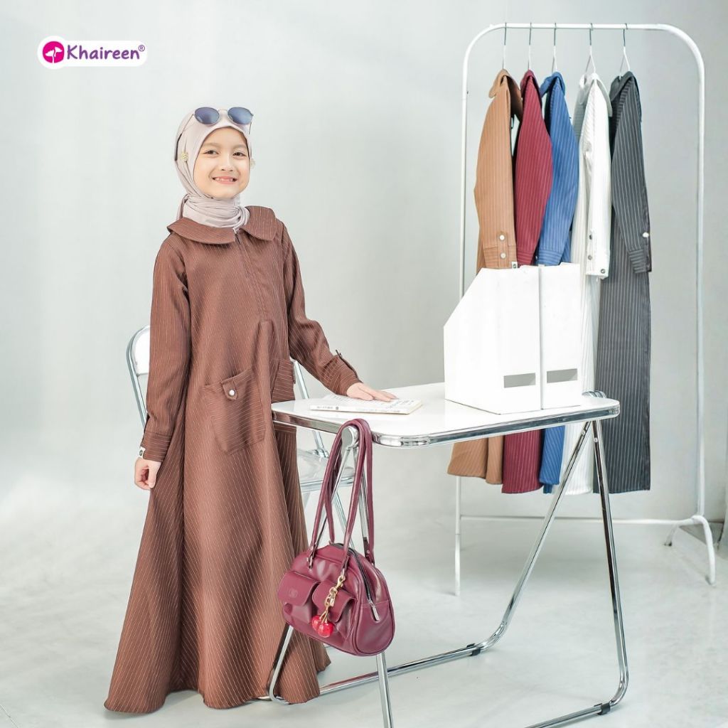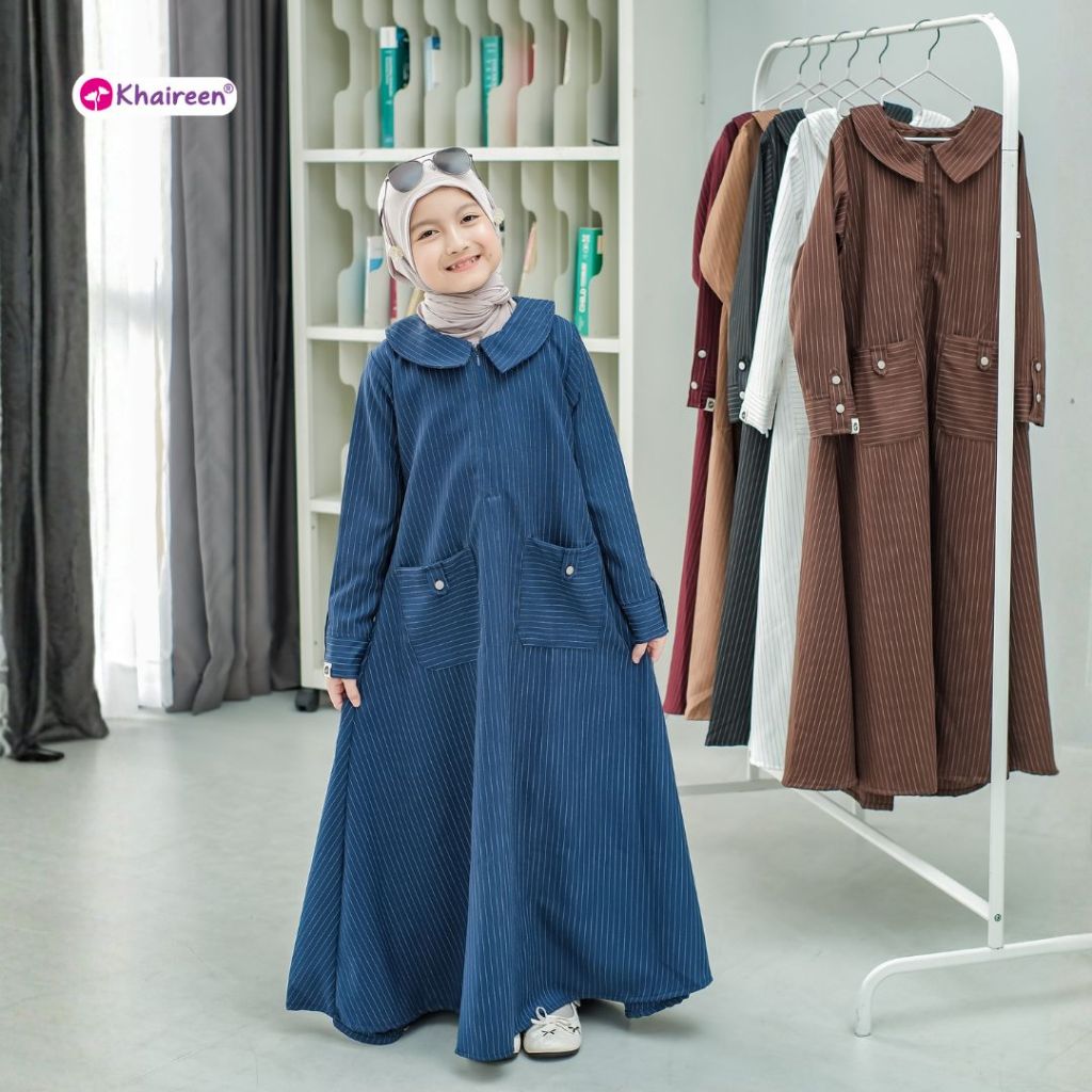 KHAIREEN Abaya Stripe Gamis Motif Anak Remaja Tanggung 314 tahun Syari Terbaru