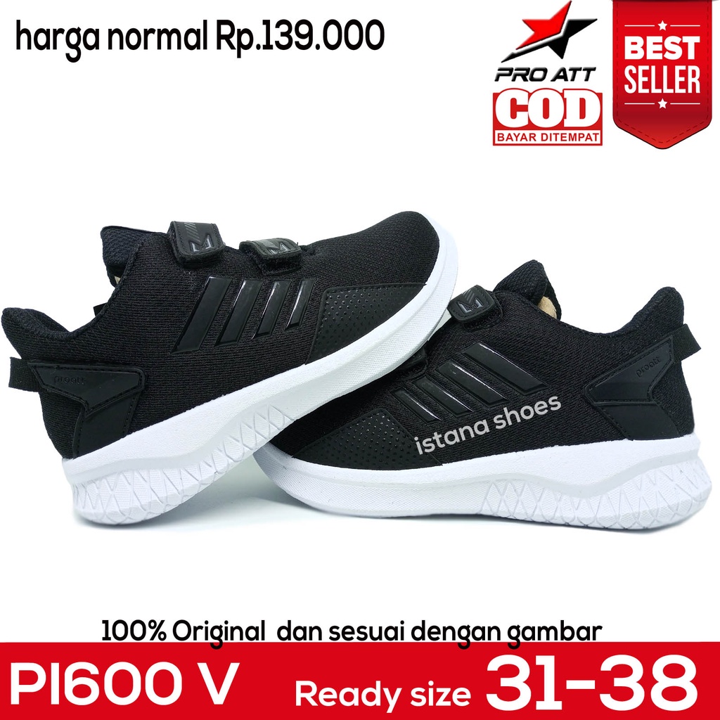 Sepatu Sekolah Anak Laki Laki Cowok Perempuan PAUD TK SD SMP Hitam Putih Perekat Sneakers Casual PRO ATT PI 600