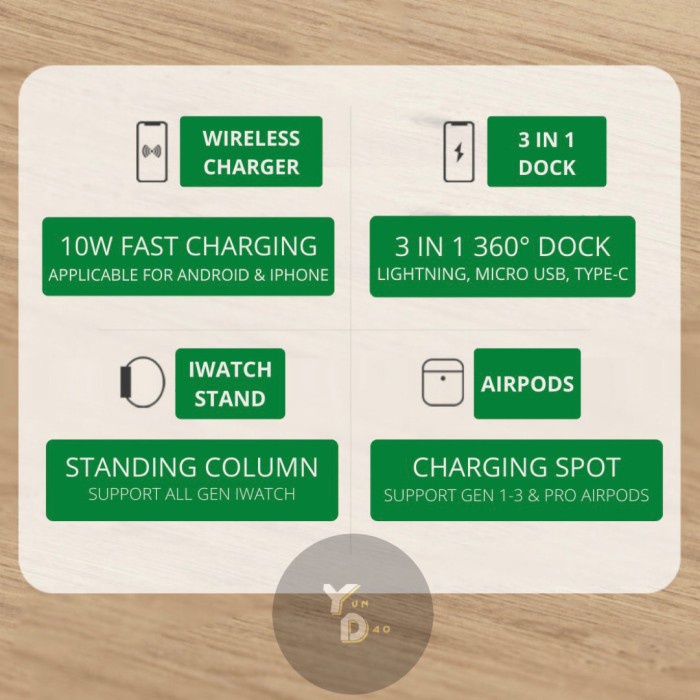 Wireless Charger 6 In 1 Iphone Samsung Docking Station Fast Charging Universal Android
