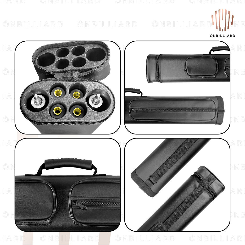 ONcase Tas Stick Billiard 2x4 Cue Case Billiard PU Leather 2 Butt 4 Shaft Hard Case 6 Lubang Pipa dan Kain Biliar Billia
