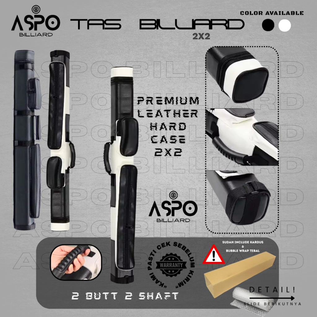 Tas Billiard 2x2 Hard Case Premium Leather Original Case / Tas Biliar Hitam Putih / Black & White Case Ball Alat