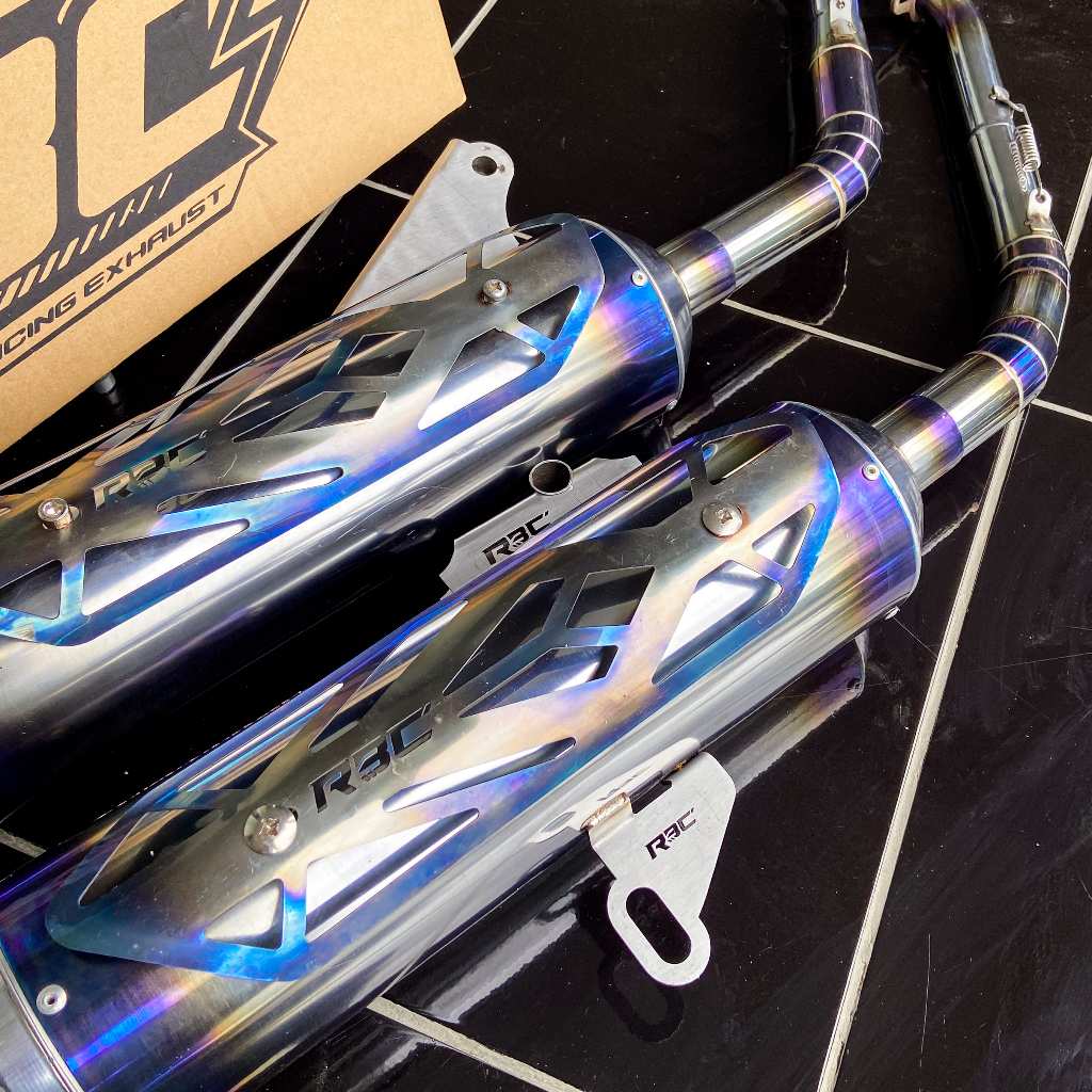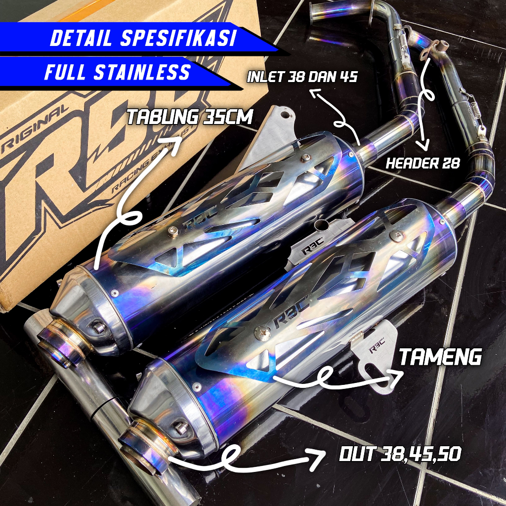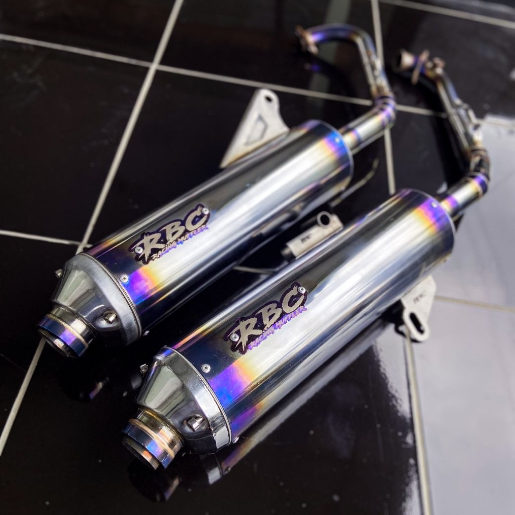 KNALPOT STANDAR RACING ORIGINAL RBC MUFFLER STAINLESS [BLUE TAMENG] DAN [TANPA TAMENG] MOTOR VARIO MIO BEAT PCX AEROX NMAX SCOOPY STYLO DLL