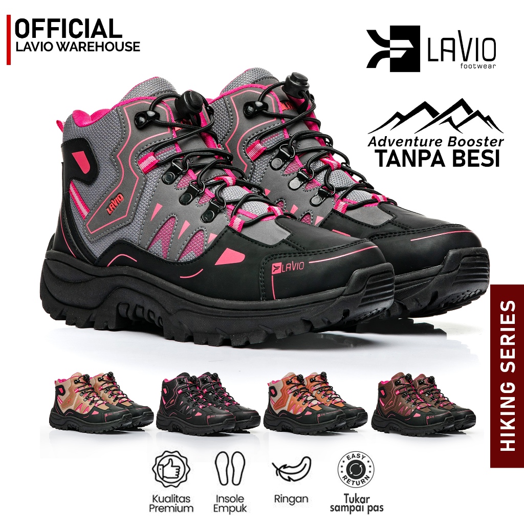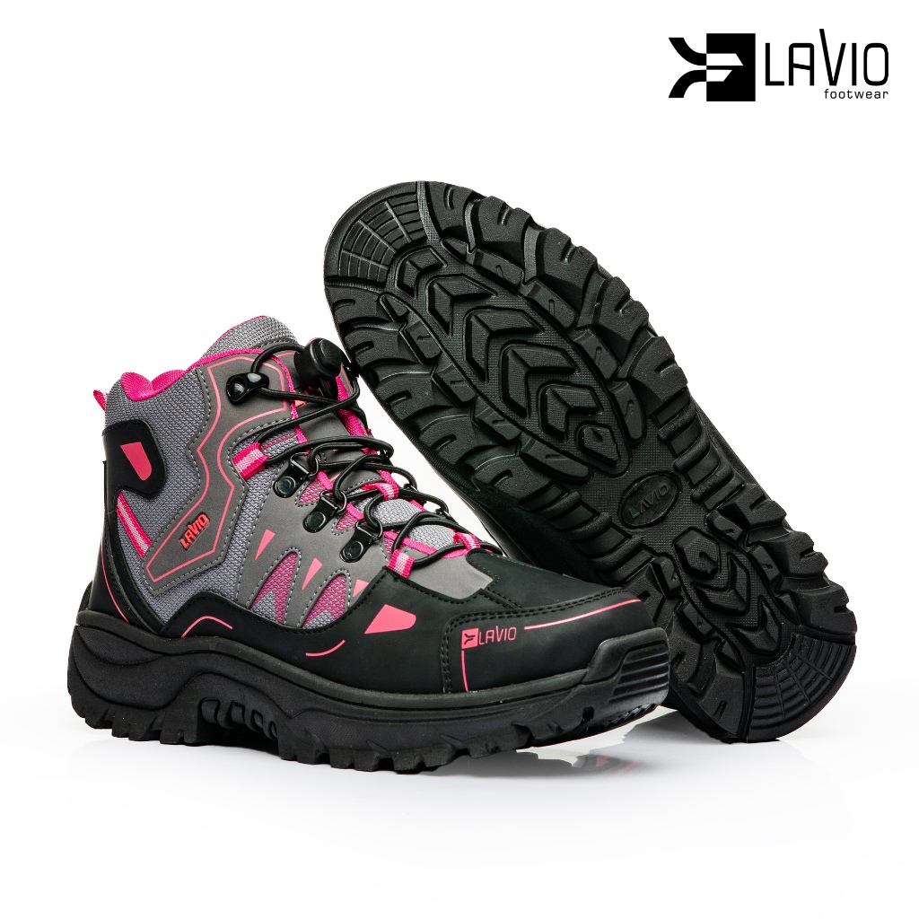 Lavio Twins Pink Trekking | Sepatu Wanita Pria Boots Lazy Lace Stopper Hiking Trekking Tektok Kerja Reflector Best Quali