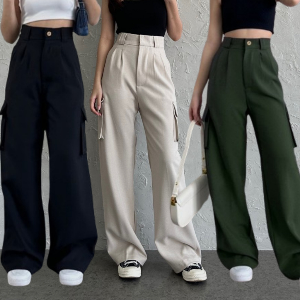 Celana Cargo Wanita Highwaist Premium Kulot Cargo Pants Wanita Korean Style