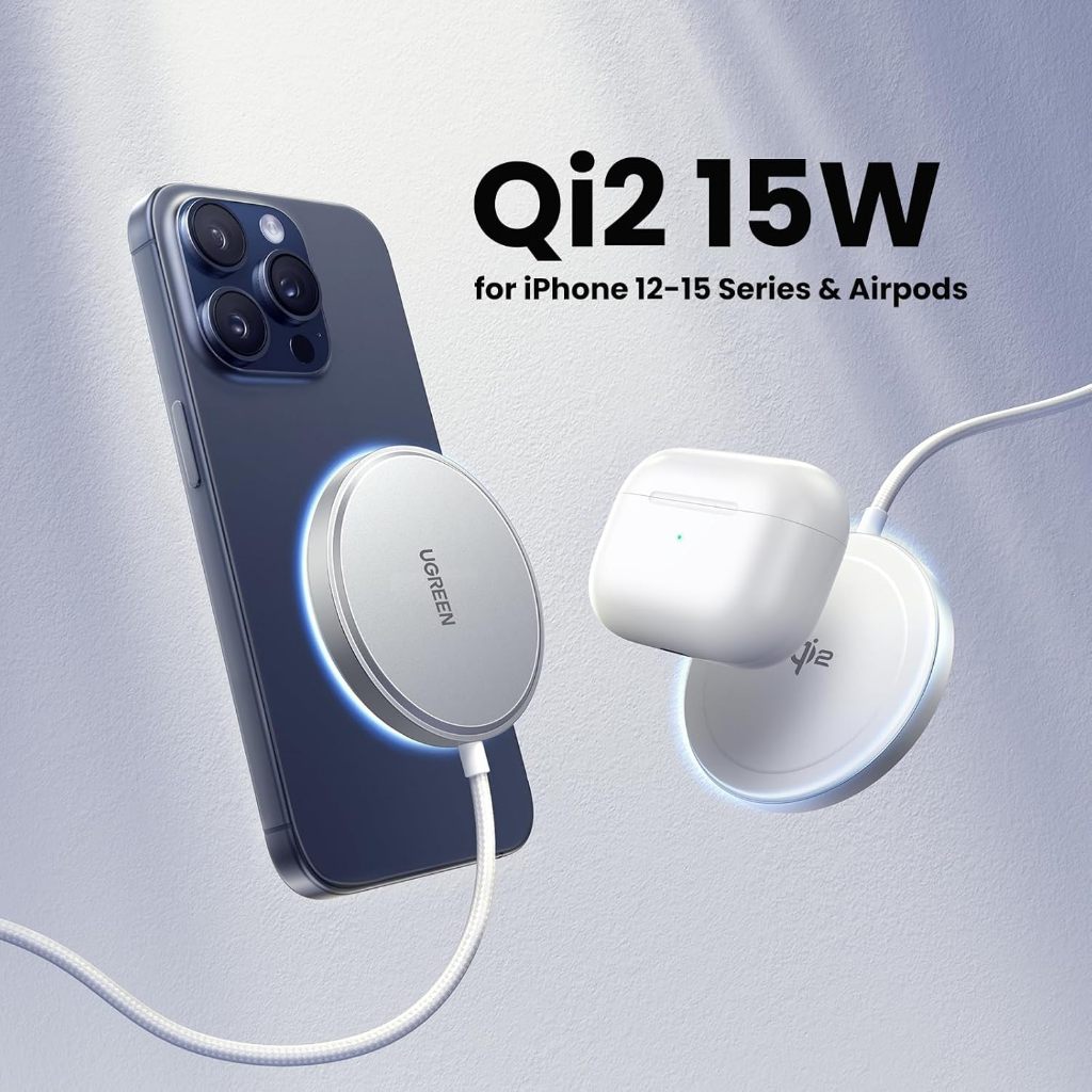 Ugreen Qi2 Wireless Charger Magnetic Fast Charging 15W For Iphone & Airpods Series