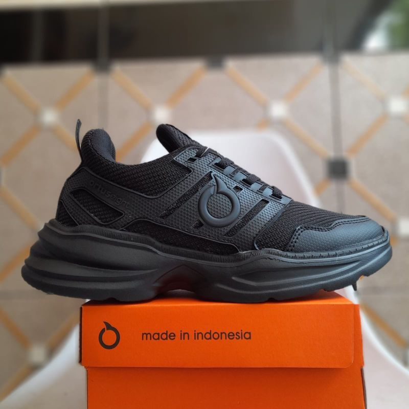 Sepatu Runing Ortuseight Hitam Polos Sepatu Sekolah Anak Dan Dewasa Sepatu Pria Wanita Unisex