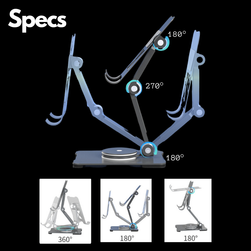 Nouzen Stand - Aluminium 360° Revolve Phone/Tablet Stand Holder Adjustable Foldable 2 Level