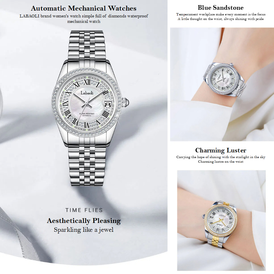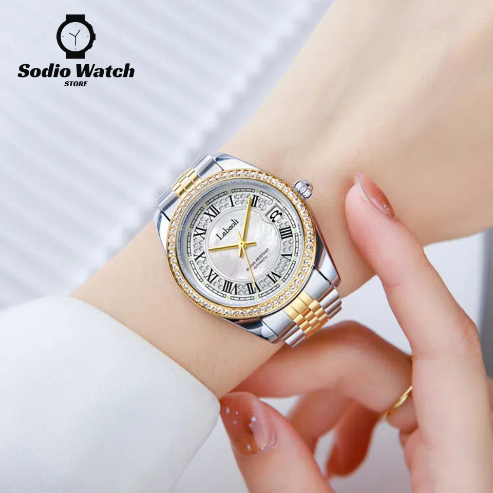 Jam Tangan Automatic Wanita Original Anti Air Merek Labaoli Otomatis Mewah Diamond Kalender Watch