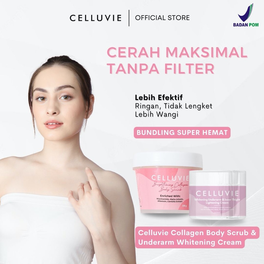 CELLUVIE BUNDLING Pemutih Ketiak x Whitening Collagen Body Scrub Mencerahkan Ketiak & Selangkangan Gelap