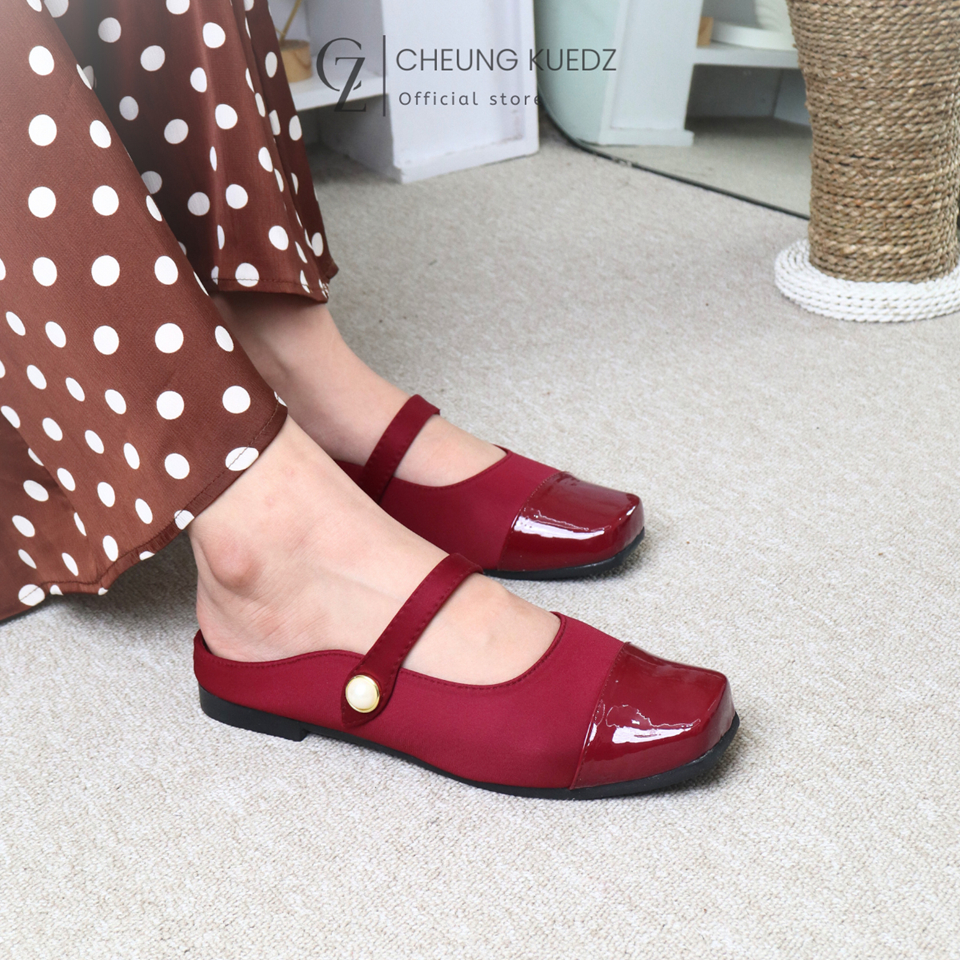 Cheung Kuedz CLAIRE Sandal Slop Bustong Flat Shoes Wanita Bahan Satin dengan Strap Tali Nyaman