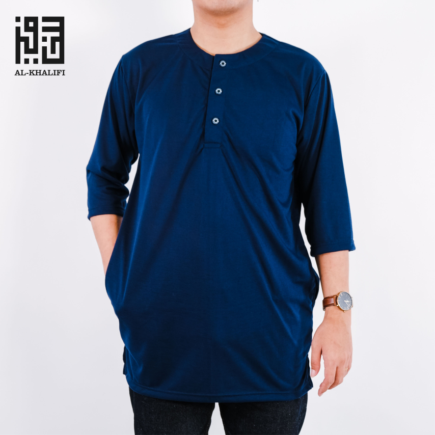 AL-KHALIFI - Kaos Koko Kurta Panjang Lengan 3/4 Baju Koko Muslim Pria - Navy