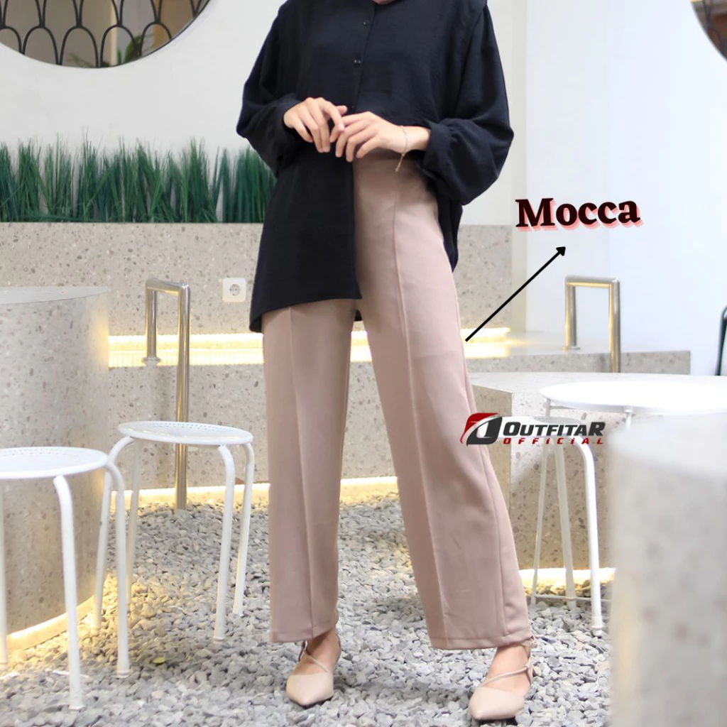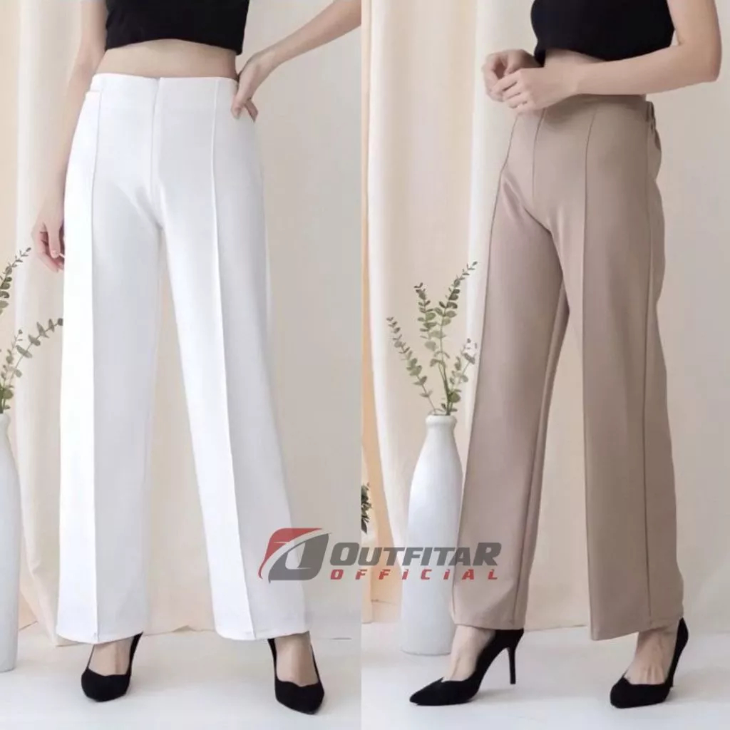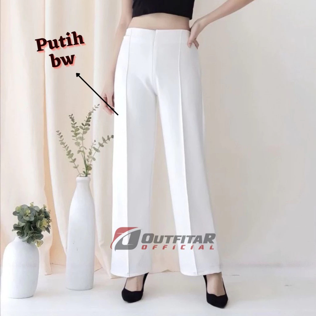 Celana Wanita Kulot Garis Basic HW Irene Cullotes Scuba Wide Leg Kulot Premium