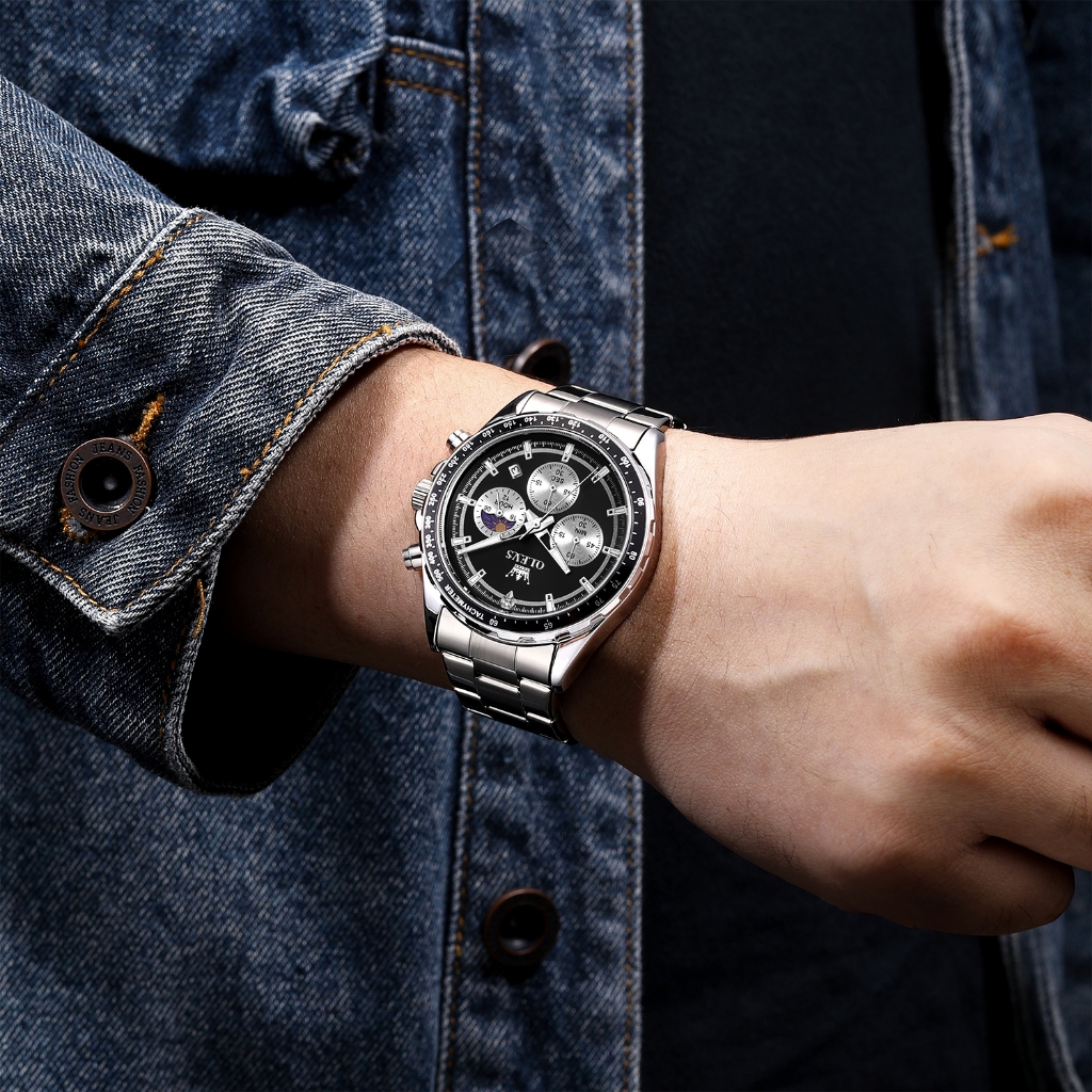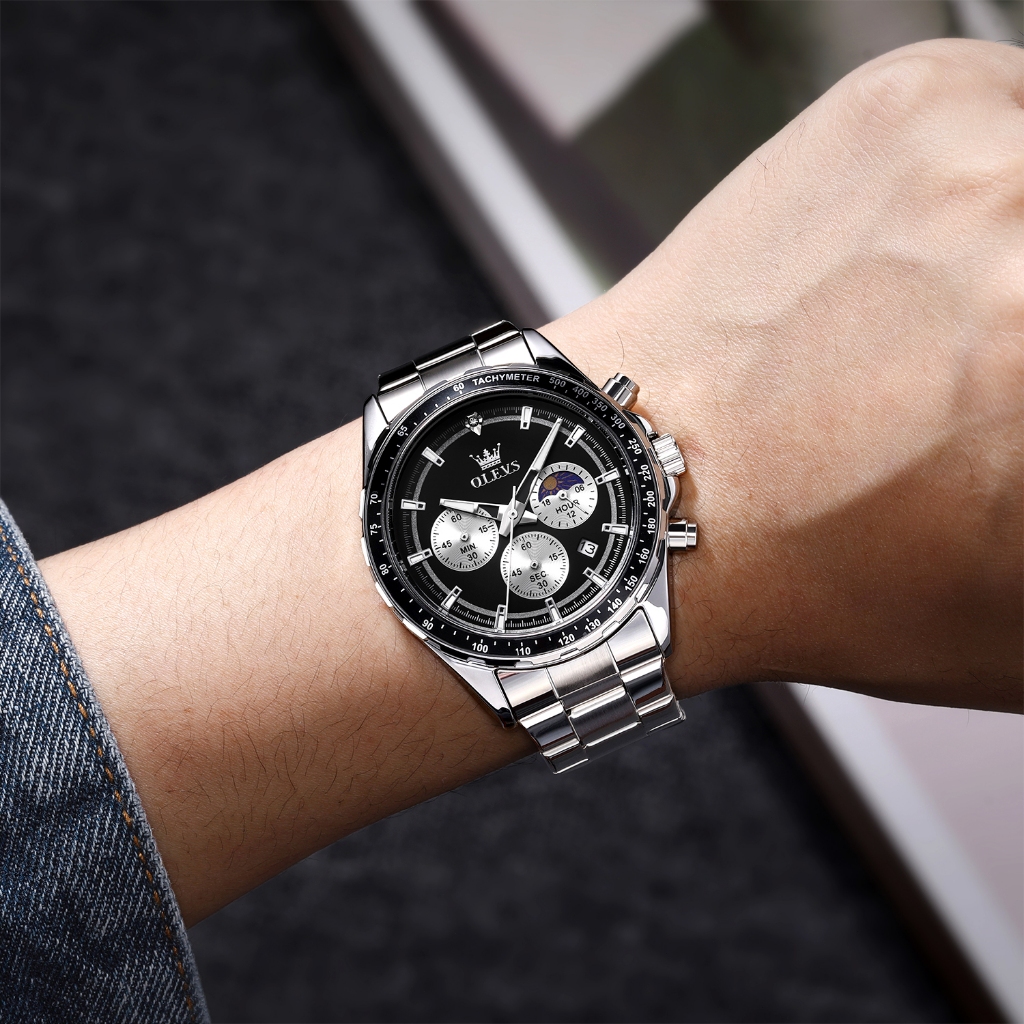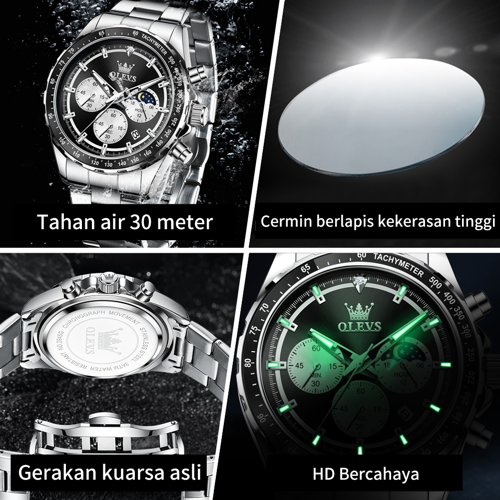Olevs Jam Tangan Pria Anti Air Original Terbaru Mewah Kalender Luminous Chronograph Analog Watch Men