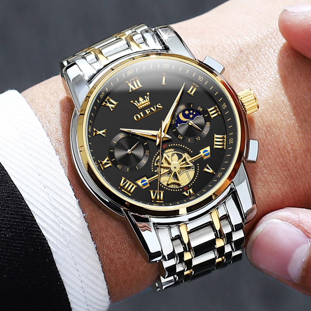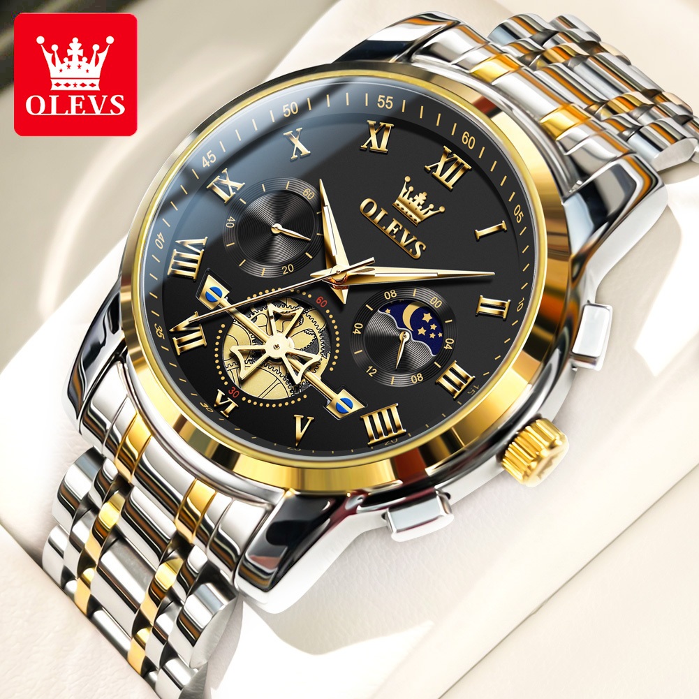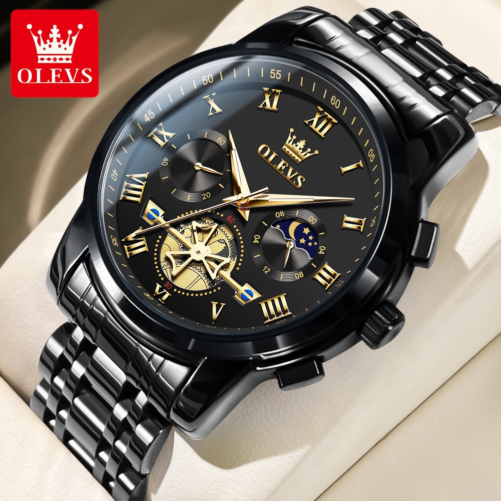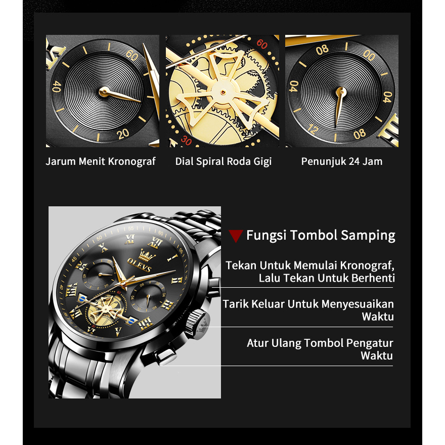 Olevs Jam Tangan Pria Anti Air Original Cowok Terbaru Tahan Luxury Led Sport Analog Chronograph Stainless Steel Watch Me