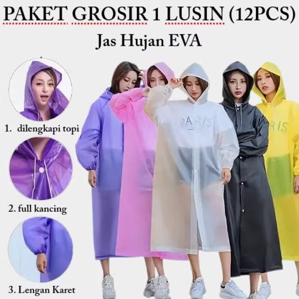 ISI 12 PCS Jas Hujan EVA Tebal Dewasa Jas Hujan Dewasa Poncho Mantel Hujan Semi Transparan