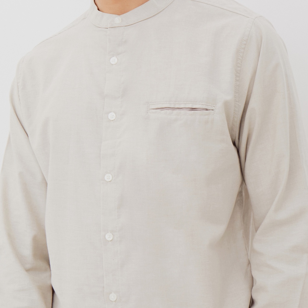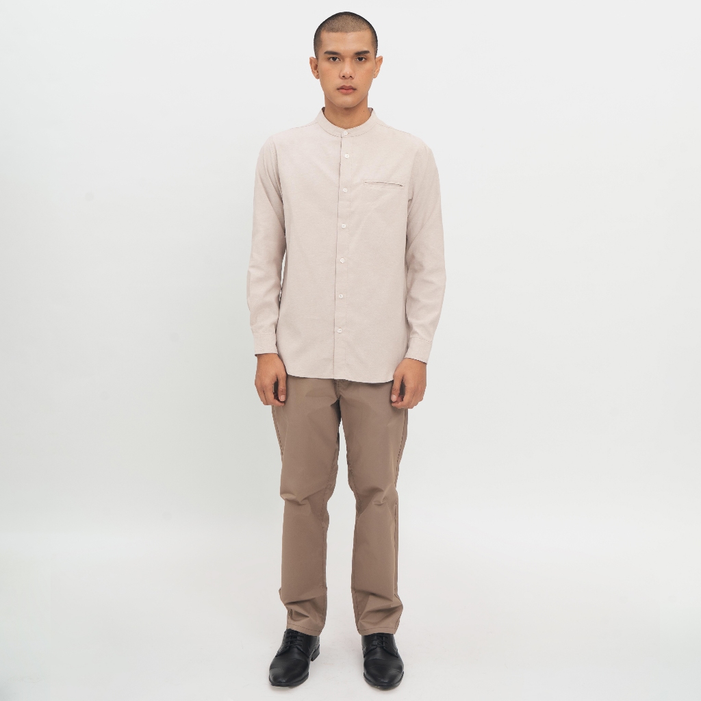 M231 Kemeja Pria Koko Shanghai Polos Oxford Panjang Beige 1552E