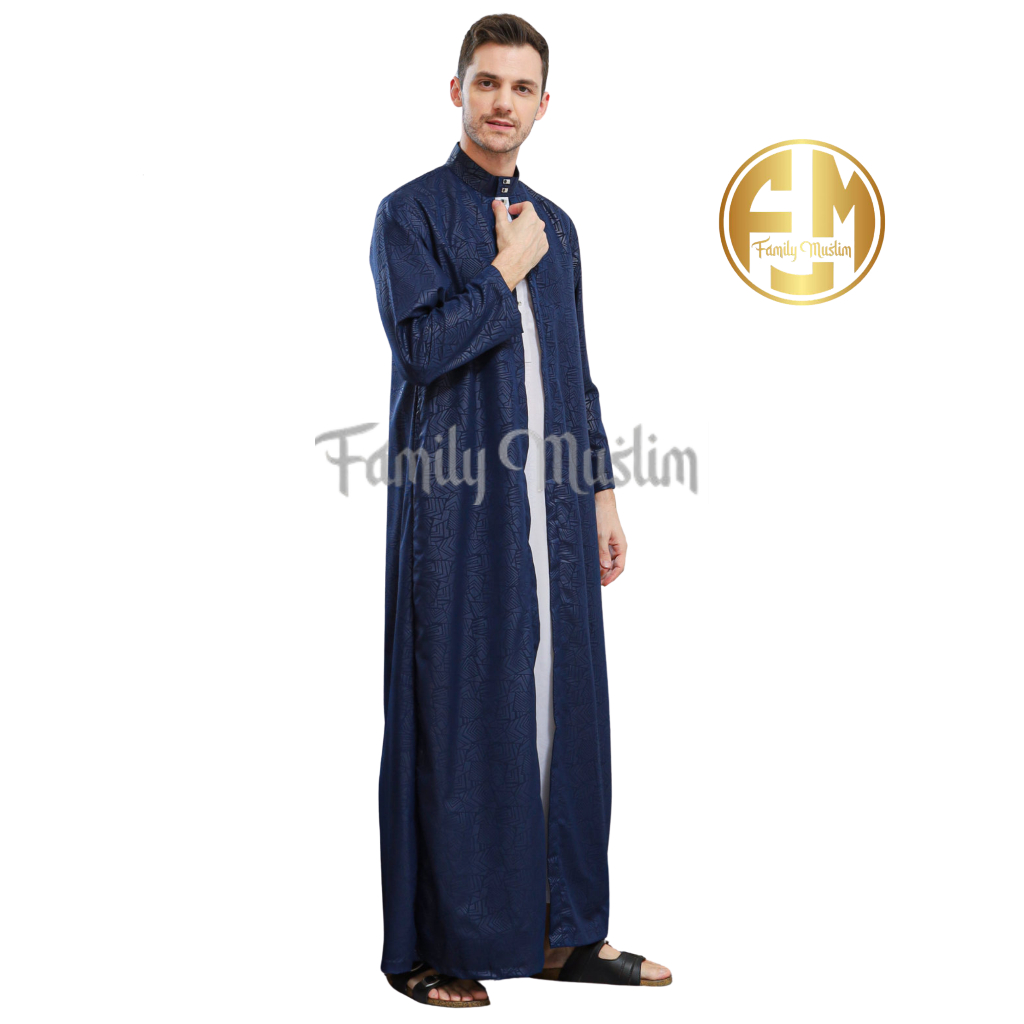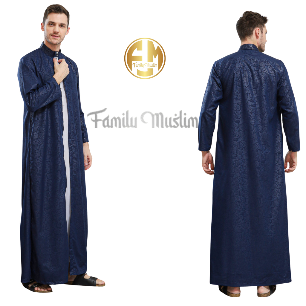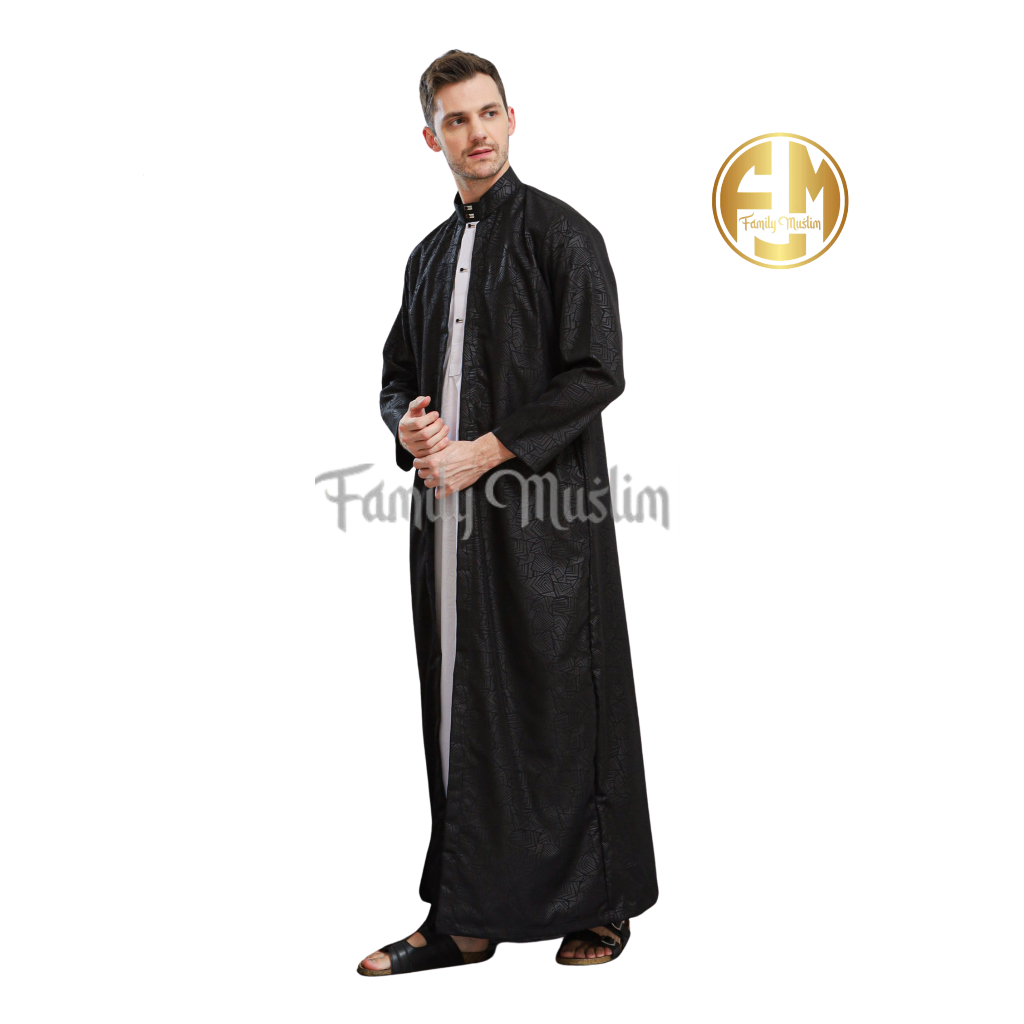 Family Muslim - Jubah Gamis Pria Dewasa Lengan Panjang 2in1 Al-Azhar Hiitam
