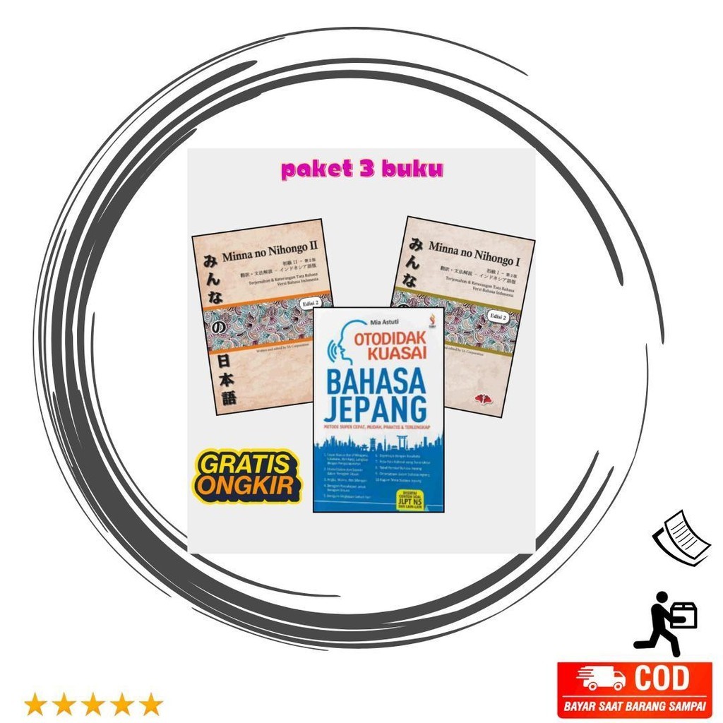 Paket 3 Buku Bahasa Jepang, Otodidak Kuasai Bahasa Jepang - minna no nihongo 1 dan 2 / M A