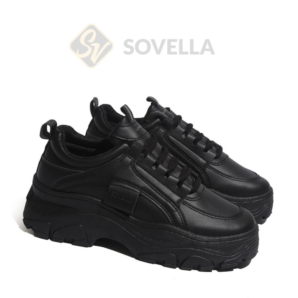 SOVELLA Levine Sepatu Sekolah Hitam Polos Sneakers Wanita