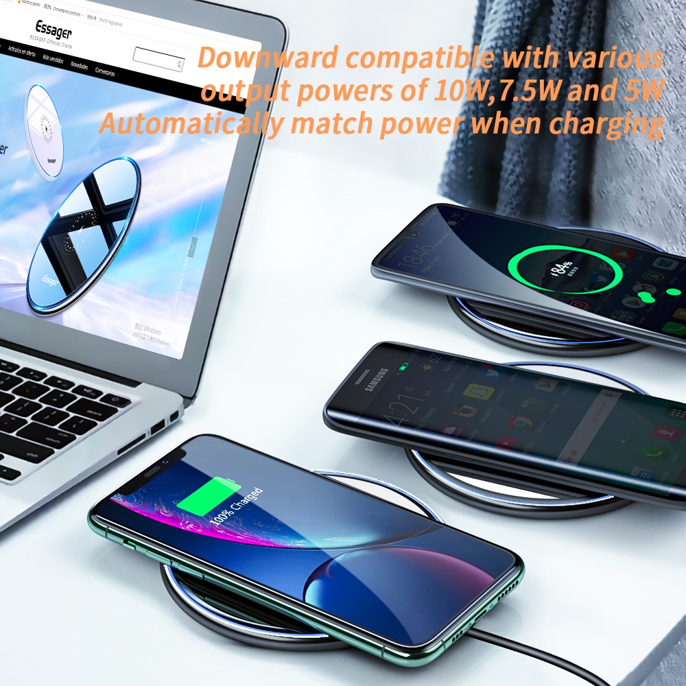 Essager 15W Dengan Led Qi Wireless Charger Untuk Pengisian Nirkabel Ponsel Ios 8-14 Dan Di Atasnya Dan Android Pengisian