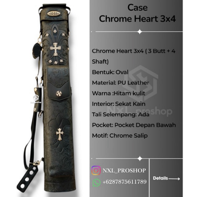 Tas Billiard Embosed Chrome Heart 3x4 Motif Salib