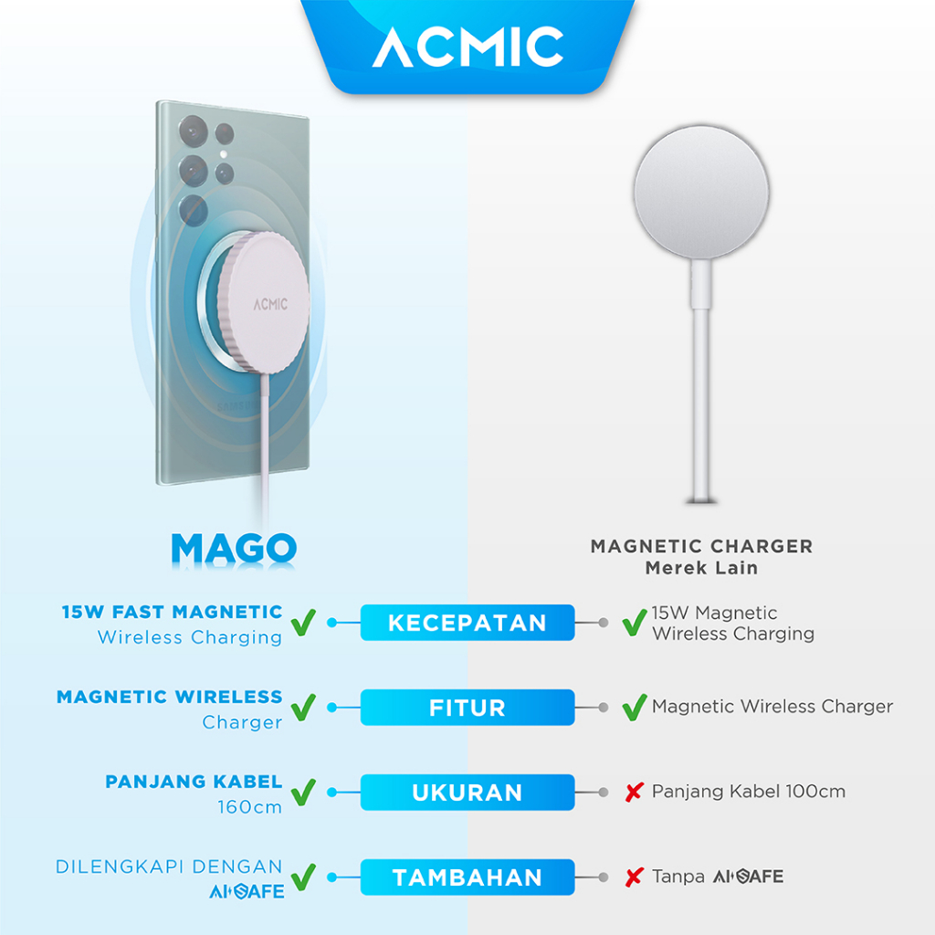Acmic Mago Magnetic Charger Fast Wireless Charging 15W Usb Type C
