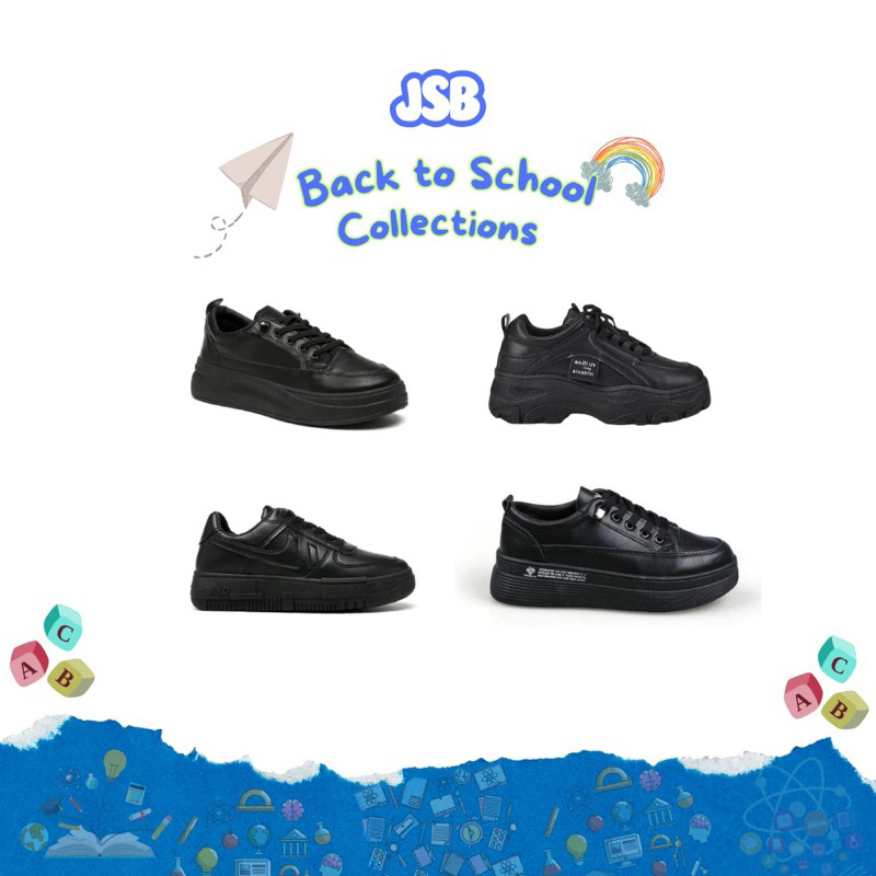Sepatu Sekolah Hitam Sneakers Wanita Korea Casual Sport Shoes Black Sepatu Masa Kini Sepatu Sneakers Wanita Keren