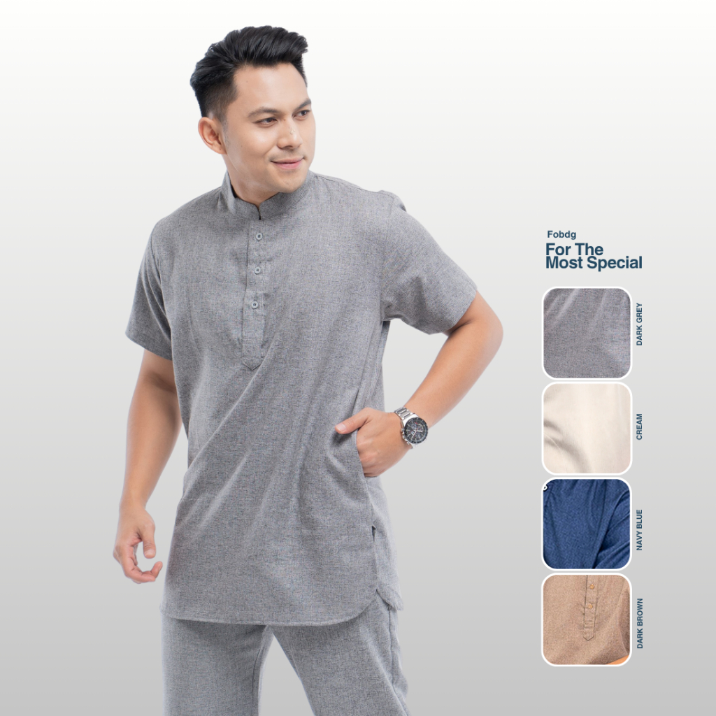 Baju Koko Setelan Yusuf Pria Dewasa Kemko Bahan katun Polos Lengan Panjang Set Hadi Fobdg