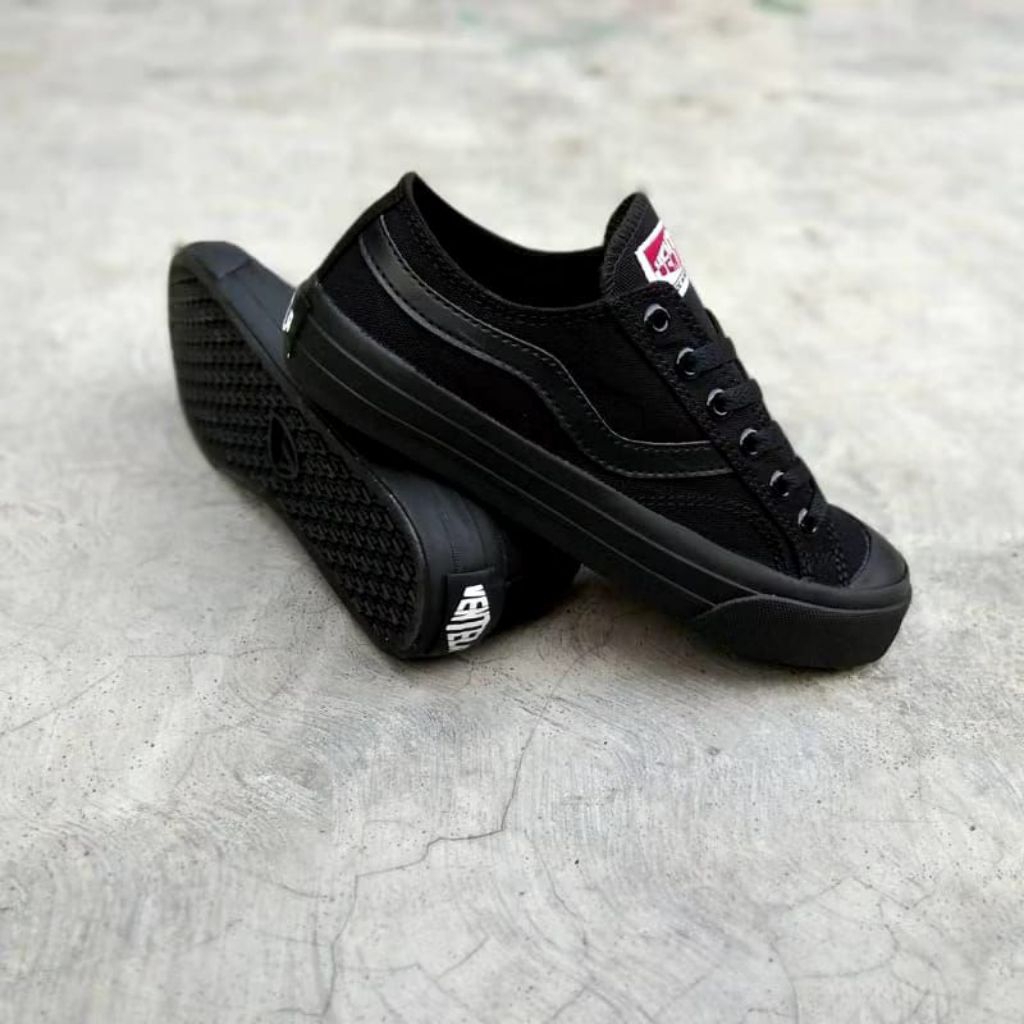 promo sepatu ventela public low full black sneakers sekolah pria wanita all black casual canvas