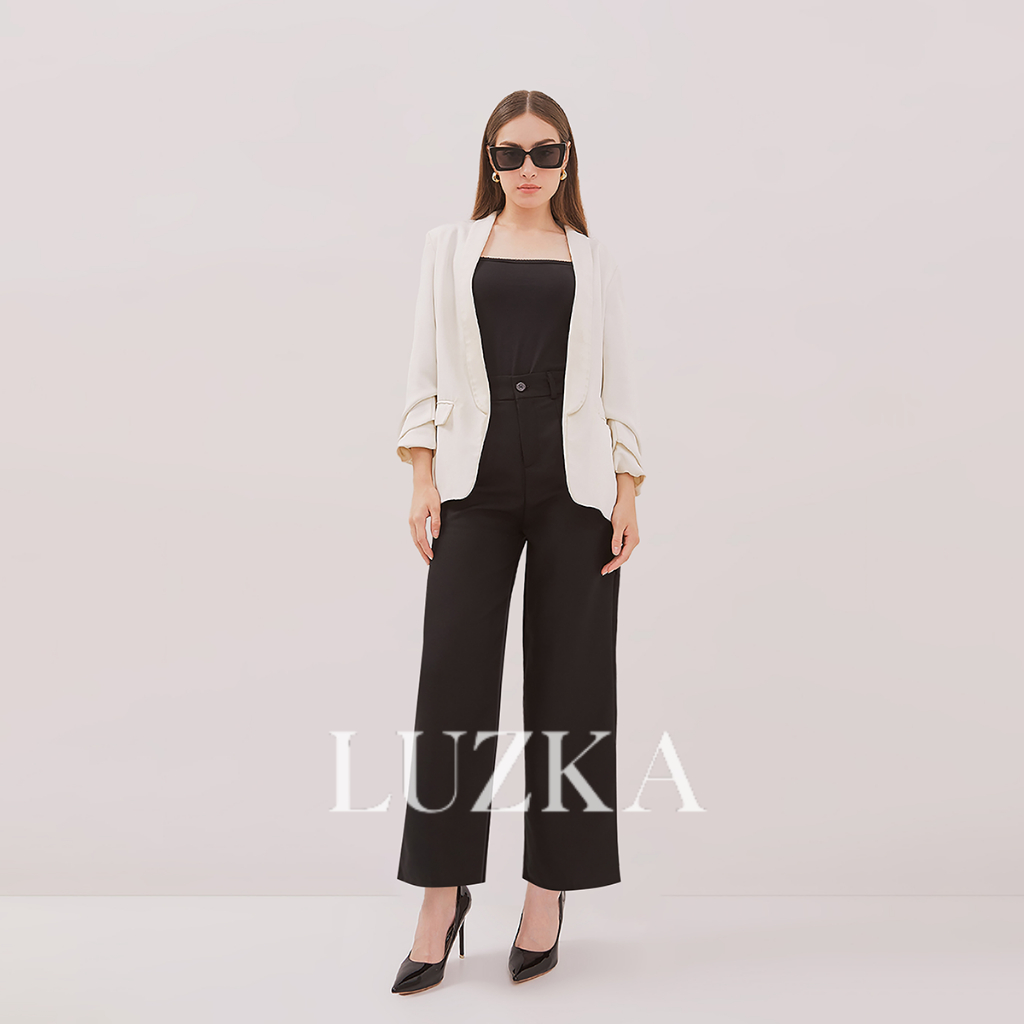 Luzka | Loose Pants - Celana Highwaist Loose Pants Trousers - Celana Formal Kulot Wanita - Black