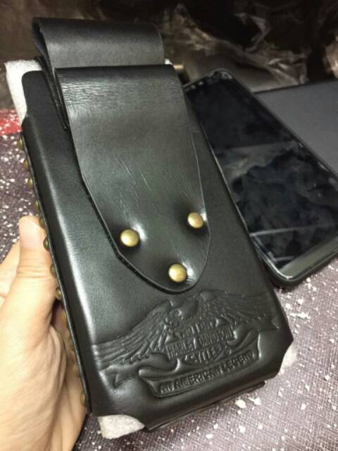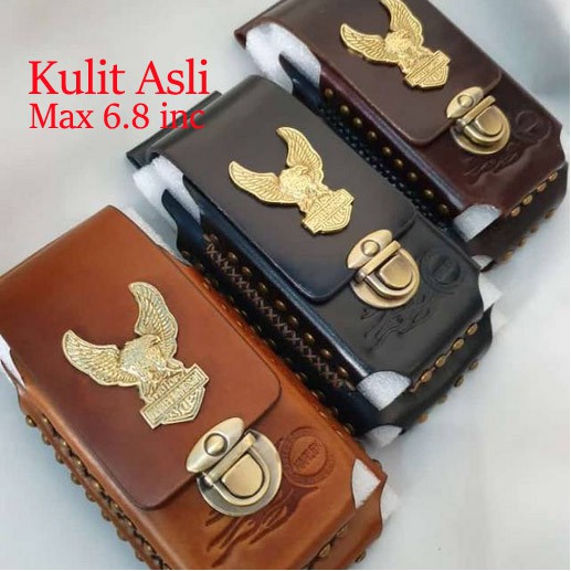 Tempat Hp Kulit Asli Harley Davidson Untuk Pria Cowok Dompet Sarung Hp Android Cantol Pinggang