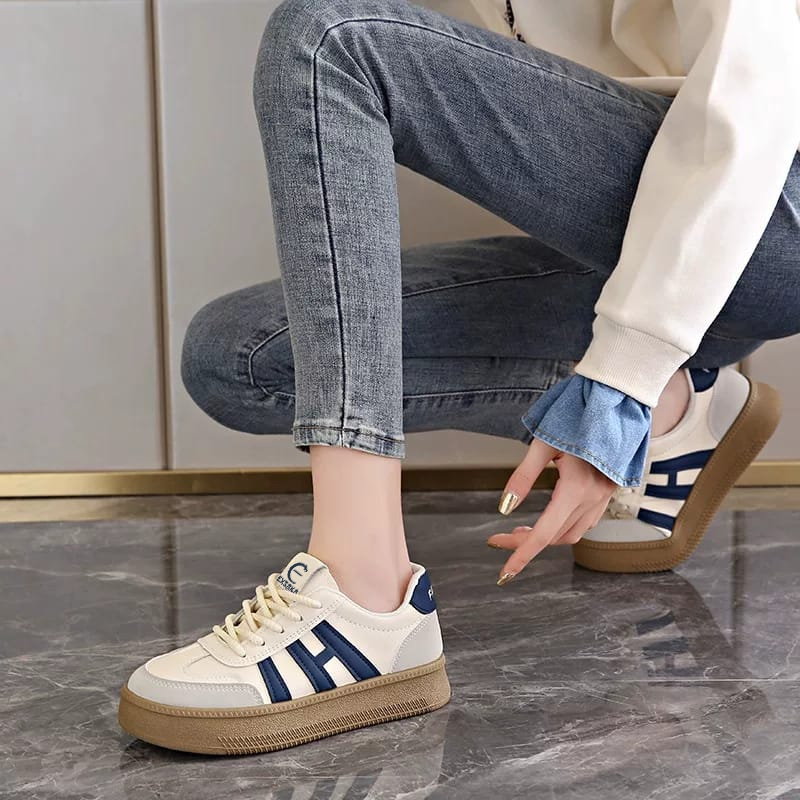 Sepatu Sneakers Wanita Kasual Karet Putih Trendy 36-41