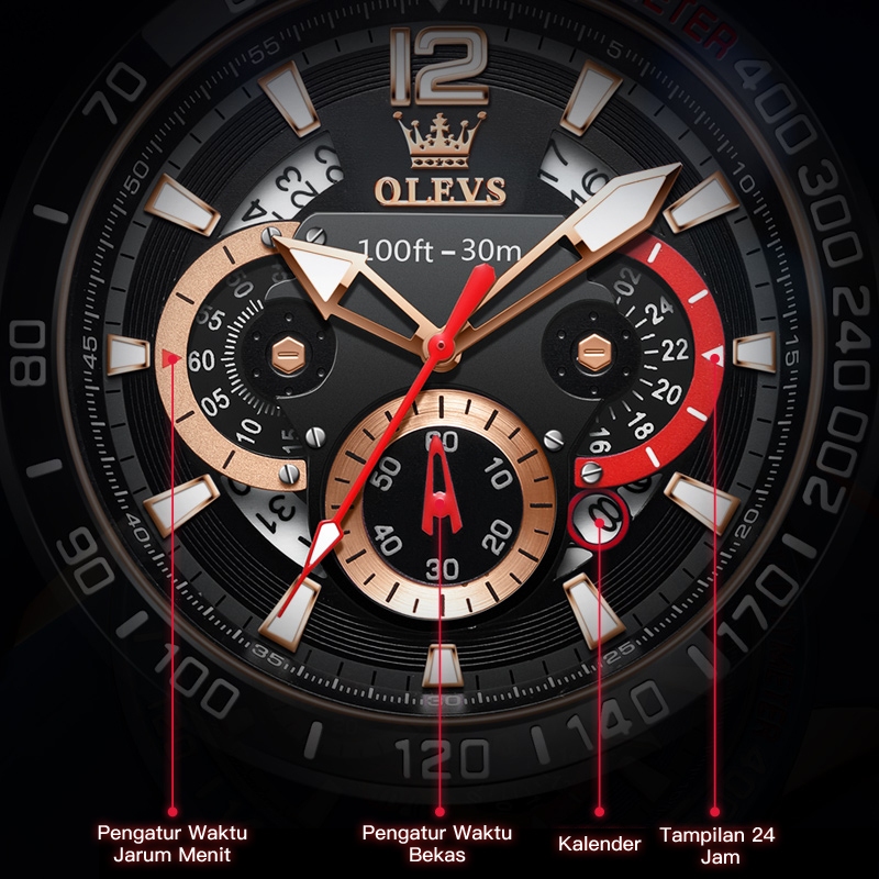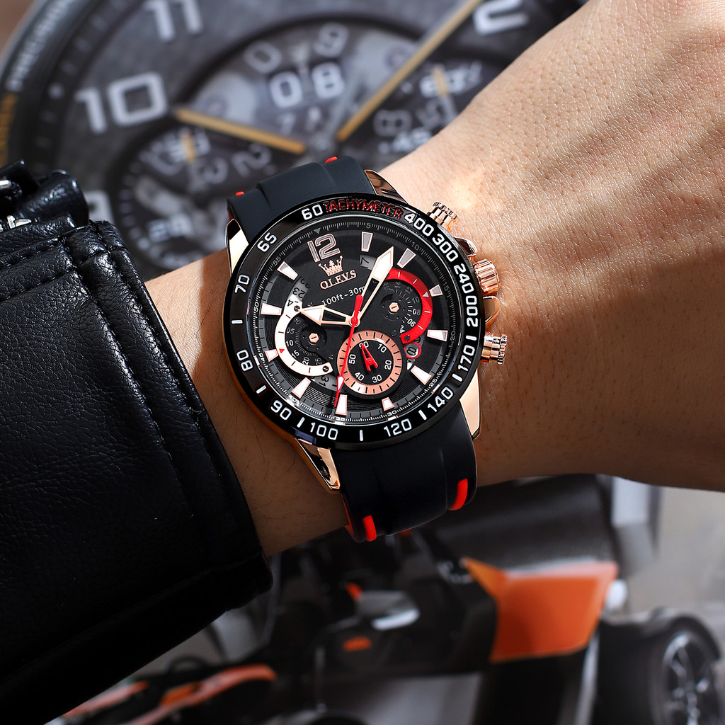 Olevs Jam Tangan Pria Anti Air Original Rantai Keren Mewah Luxury Chronograph Tali Silikon Multifungsi Watch Men
