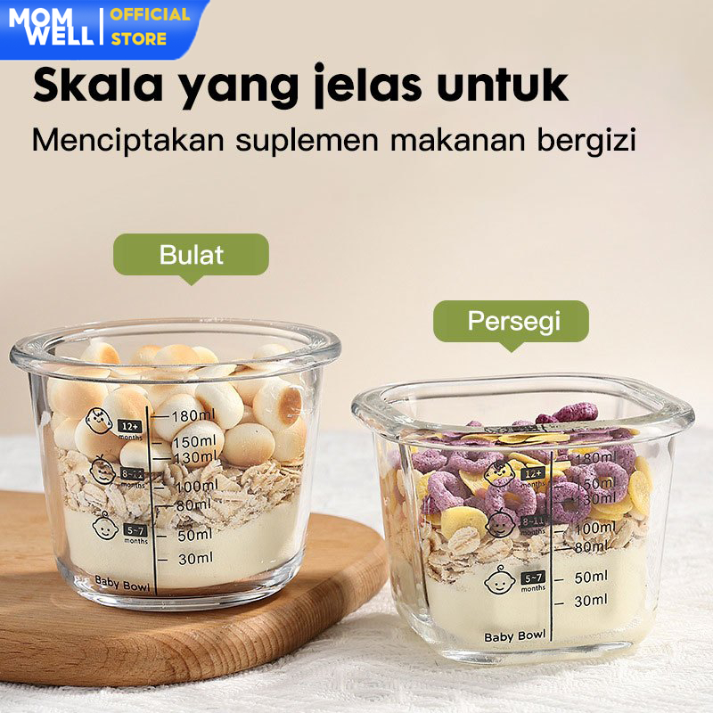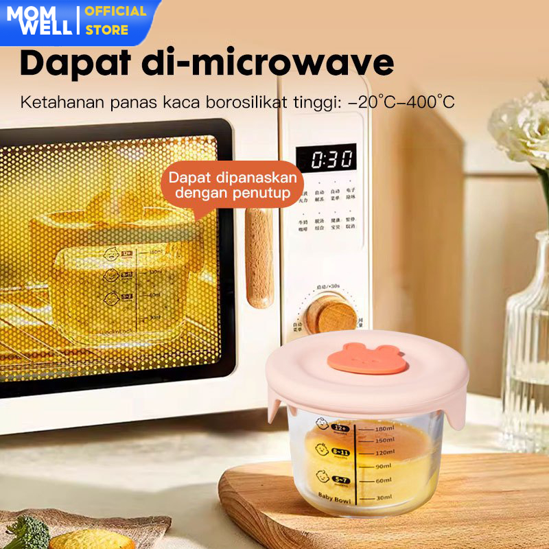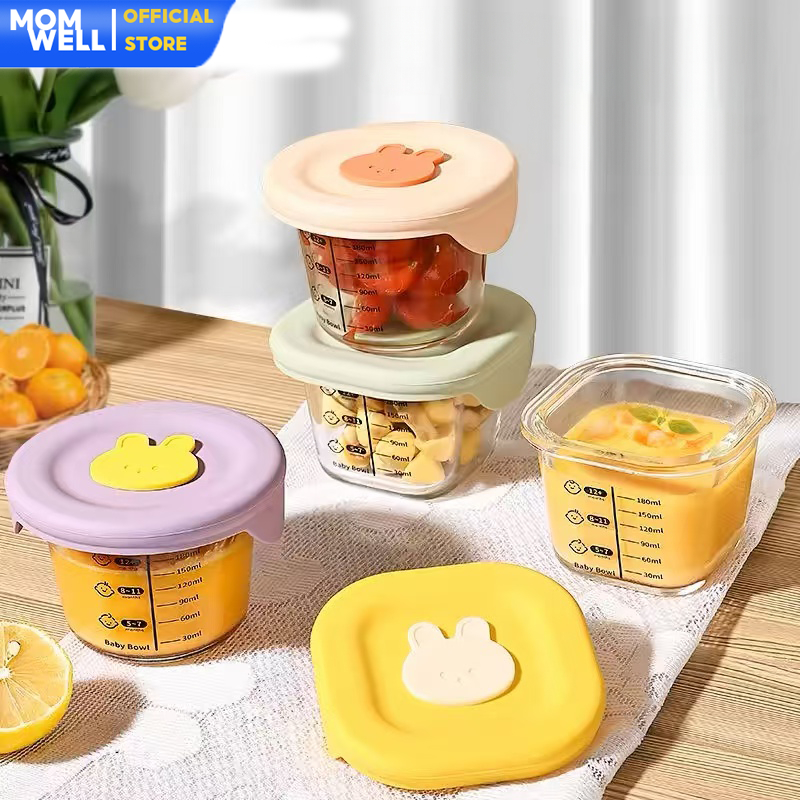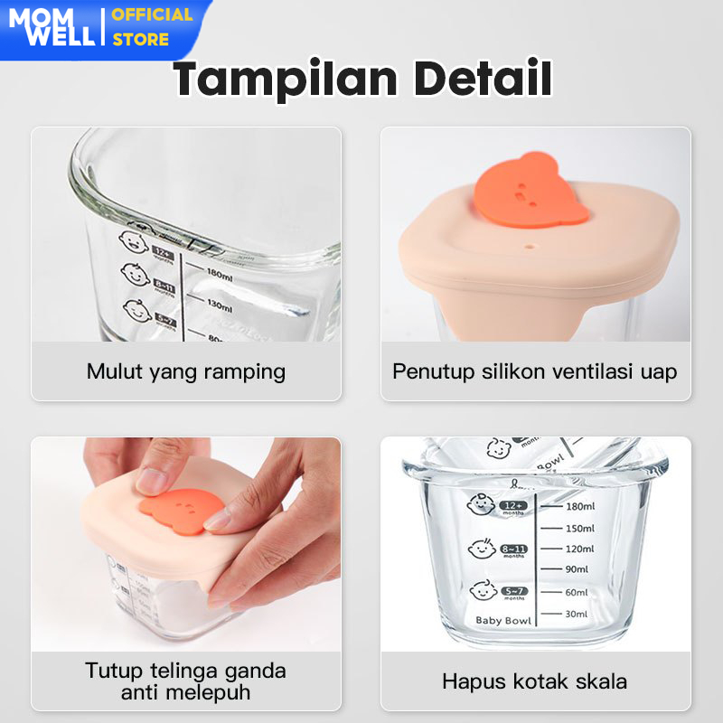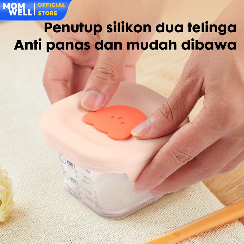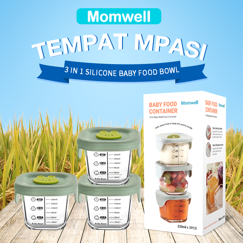 Momwell GFB08 Glass Food Container 230ml Tempat MPASI Bayi 3Pcs Set