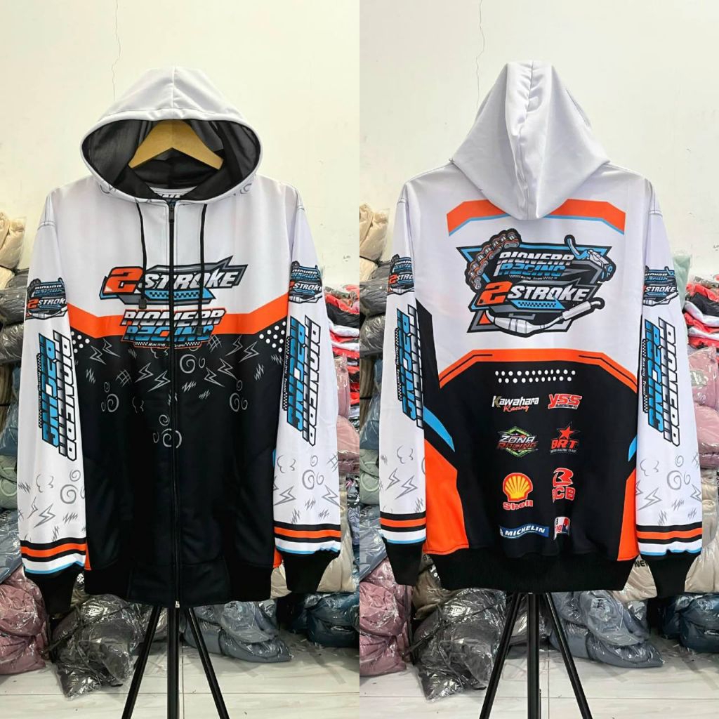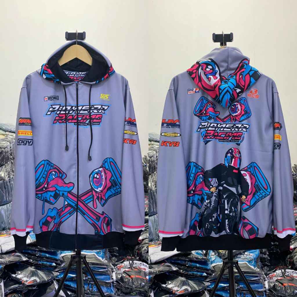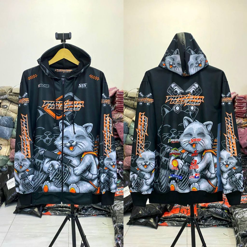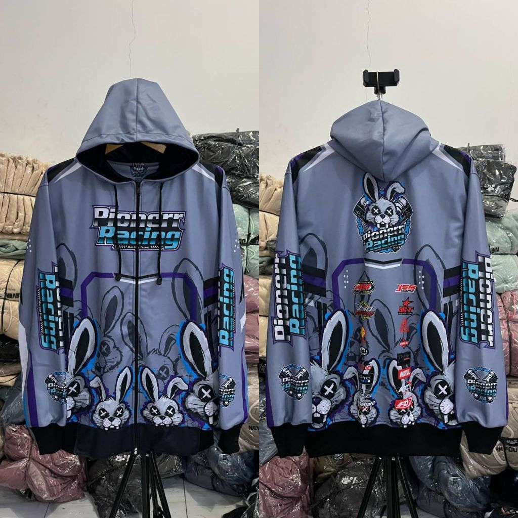 PIONERR RACING - jaket racing - racing jacket - jaket racing sunmoori - jaket racing pionerr RABBIT GHOST HITAM full printing motif terbaru unisex pria&wanita size L XL XXL