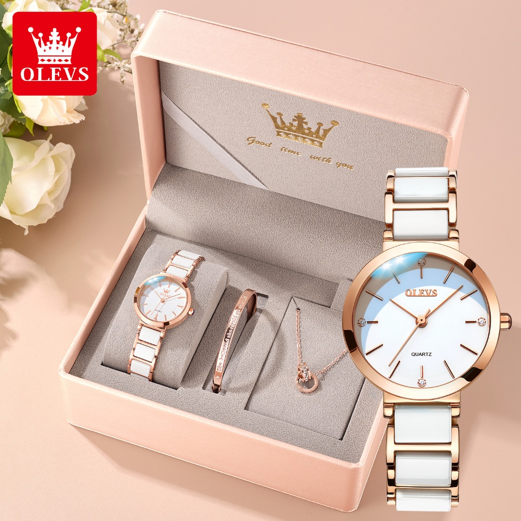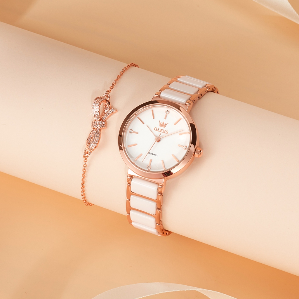 Olevs Jam Tangan Wanita Original Anti Air Tahan Analog Fashion Keramik Women Set Watch