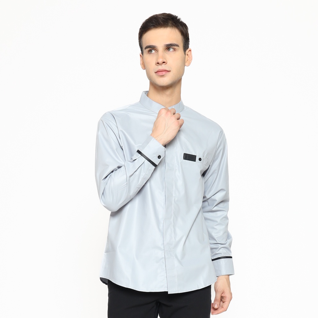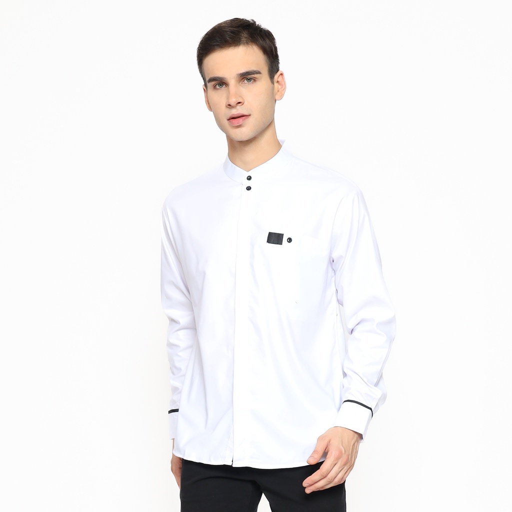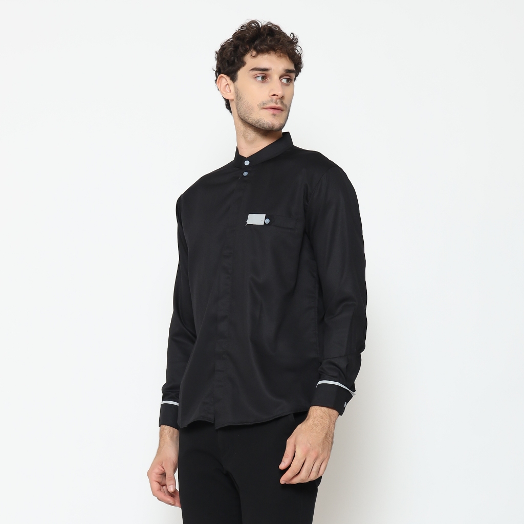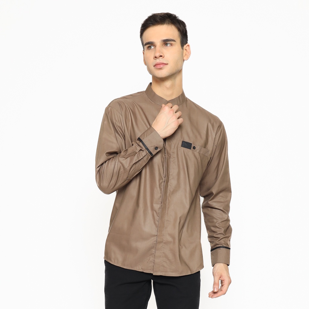 ALAWI - Baju Koko Pria Lengan Panjang Motif Sakura Warna Coksu M L XL