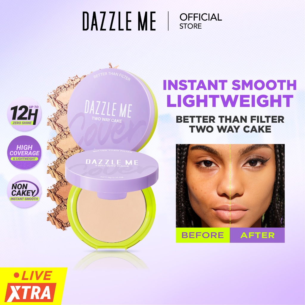DAZZLE ME Better Than Filter Double Kill Two Way Cake Pressed Powder Matte Bedak Padat Compact Powder Foundation High Coverage Oil Control Tahan 12 Jam