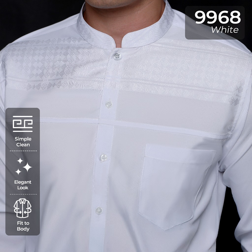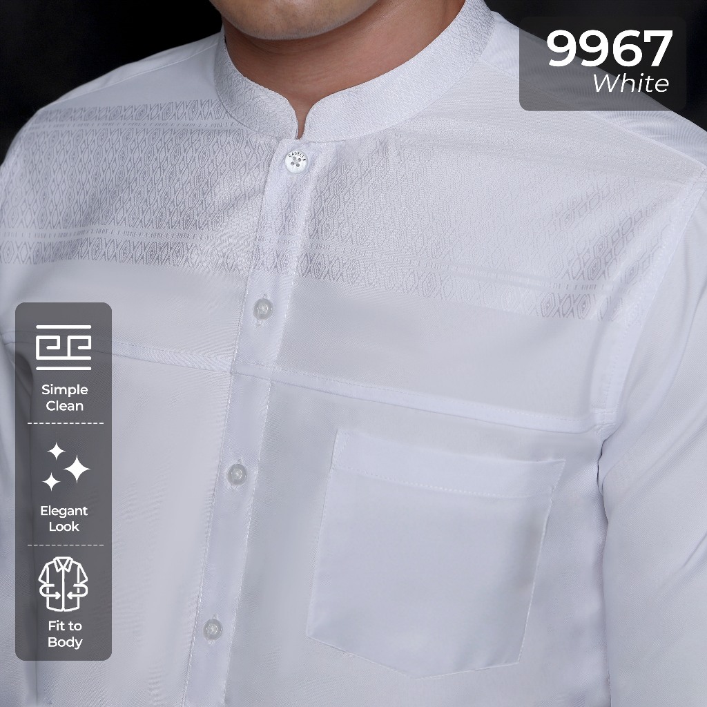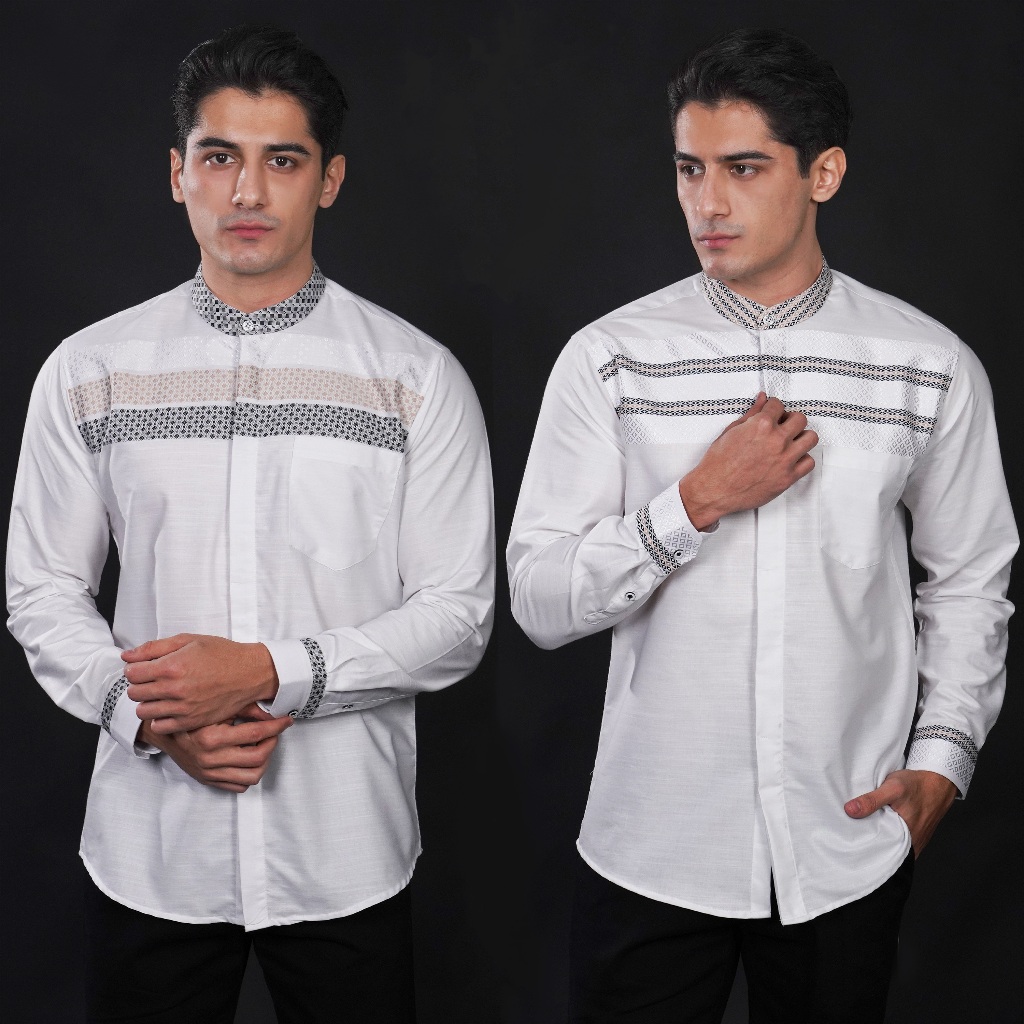 Casella Baju Koko Pria Lengan Panjang Horizontal White | Baju Koko Putih Ismail