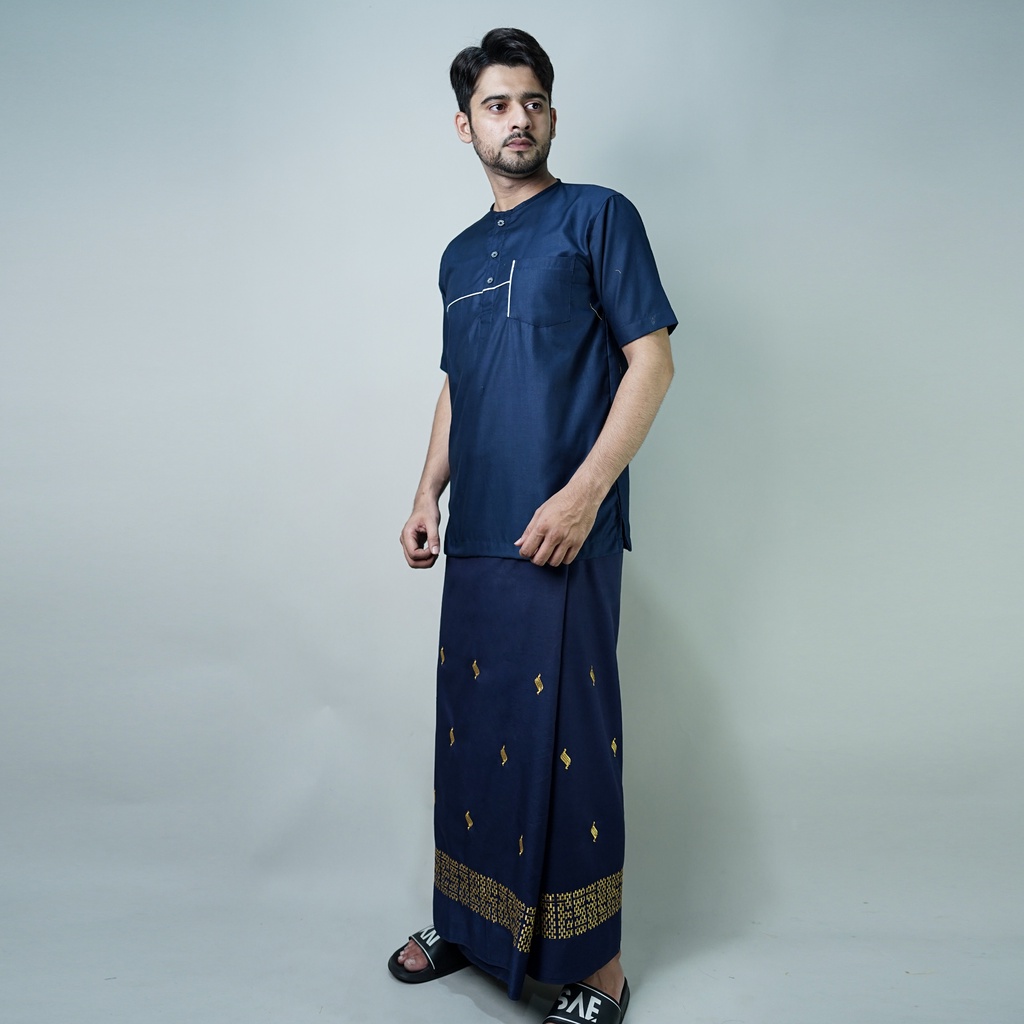 Katsae - Sarung Bordir Motif 3D Bordir Timbul Sarung Pria Dewasa Warna Navy Sarung Sholat 100 PERSEN Bordir