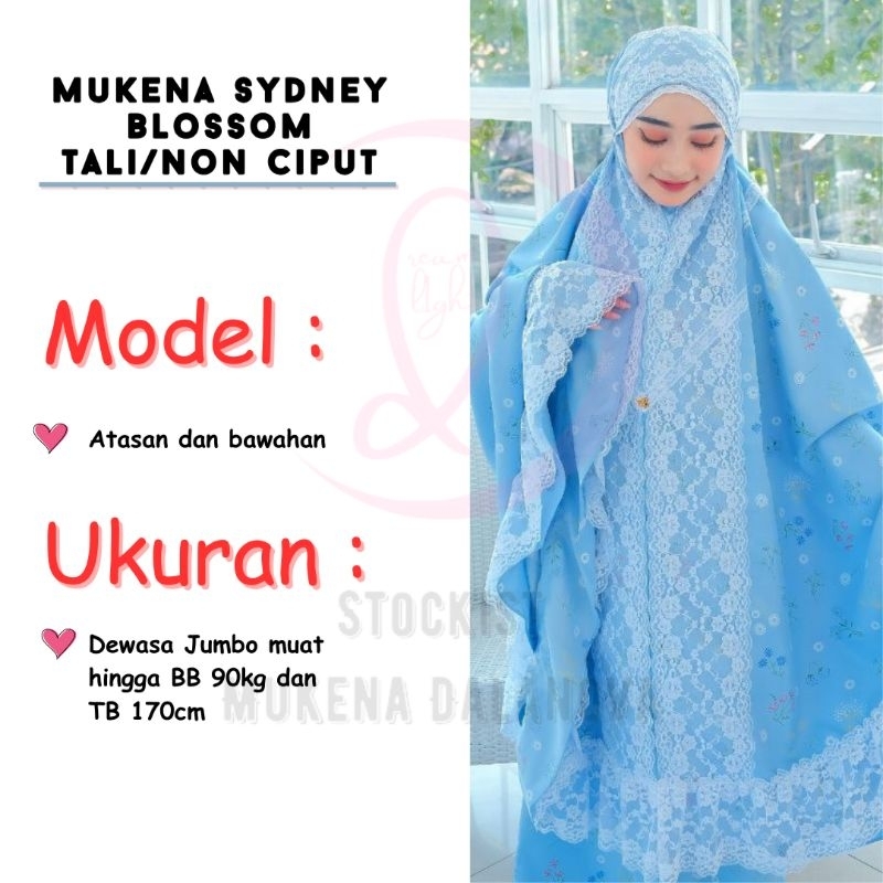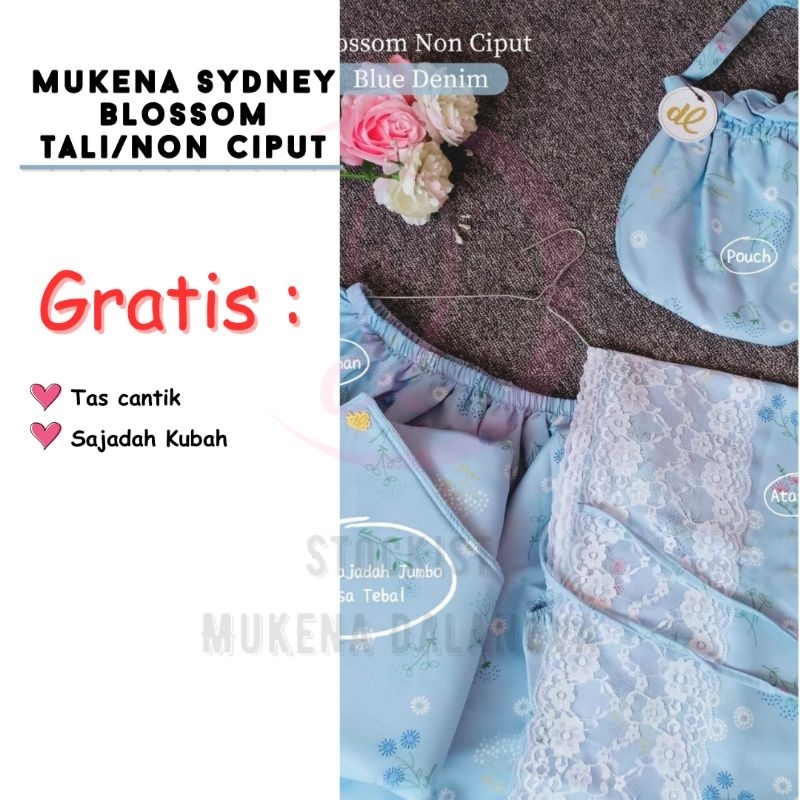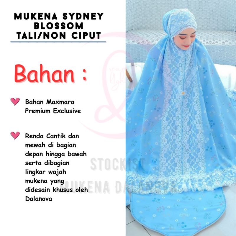 Dalanova Mukena Sydney Blossom Tali/Non Ciput Size Dewasa Jumbo dan Anak Usia 7 sd 10 tahun Bahan Maxmara Premium Exclus