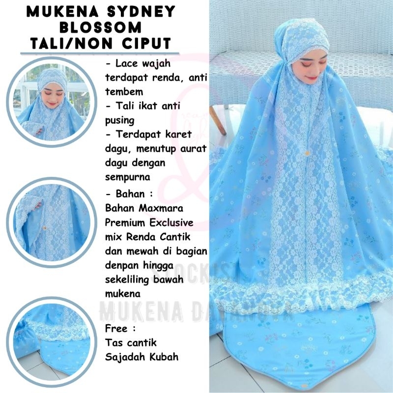 Dalanova Mukena Sydney Blossom Tali/Non Ciput Size Dewasa Jumbo dan Anak Usia 7 sd 10 tahun Bahan Maxmara Premium Exclus
